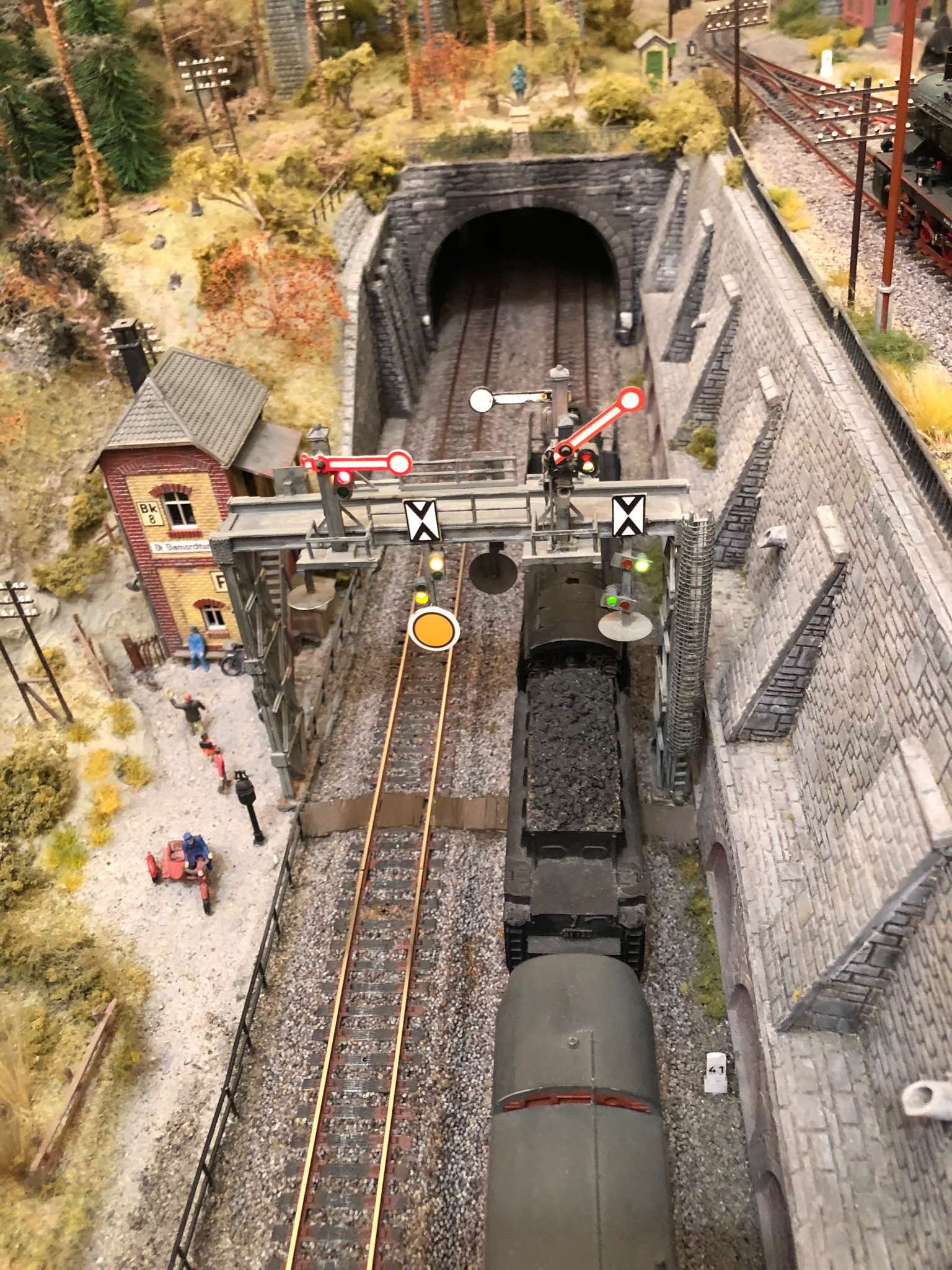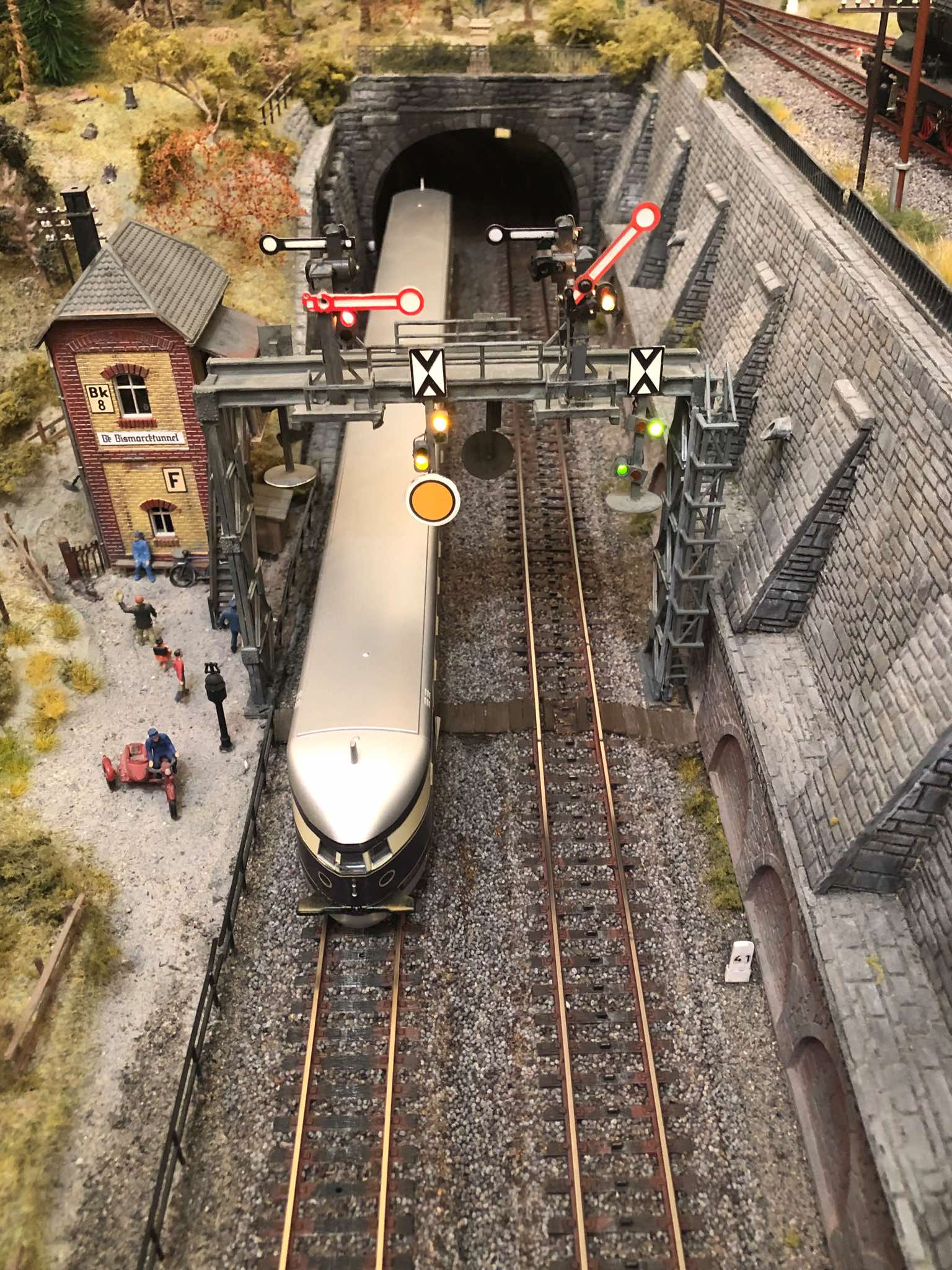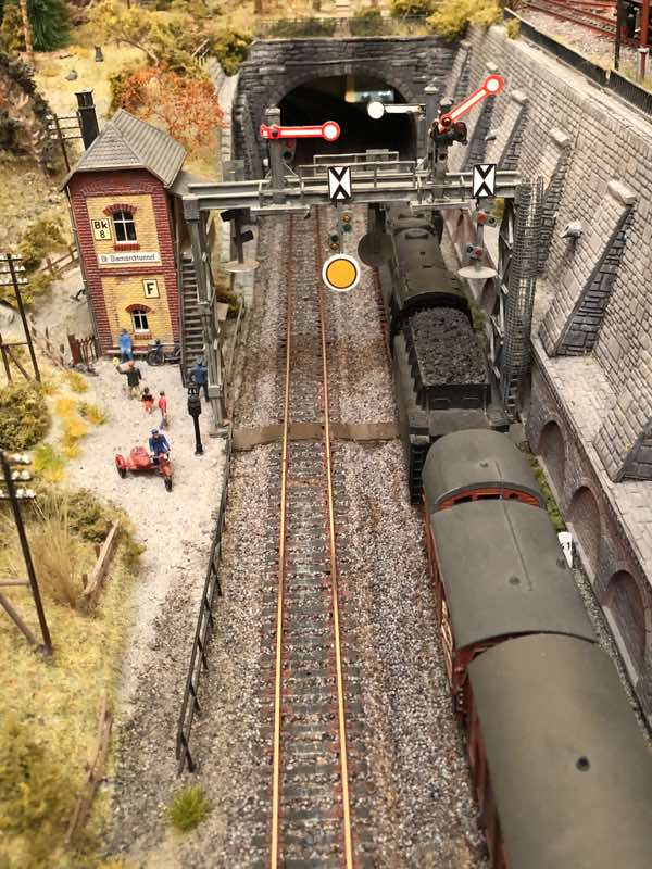Renovation der Signalbrücke (2021) Die alten Signalflügel wurden durch Märklin-Ersatzteilflügel ersetzt. Die Bilderserie zeigt die Signalbrücke vor und nach dem Umbau. Auch der seitliche Aufstieg der Signalbrücke wurde neu gestaltet (siehe Fotos mit SVT "Hamburg") |