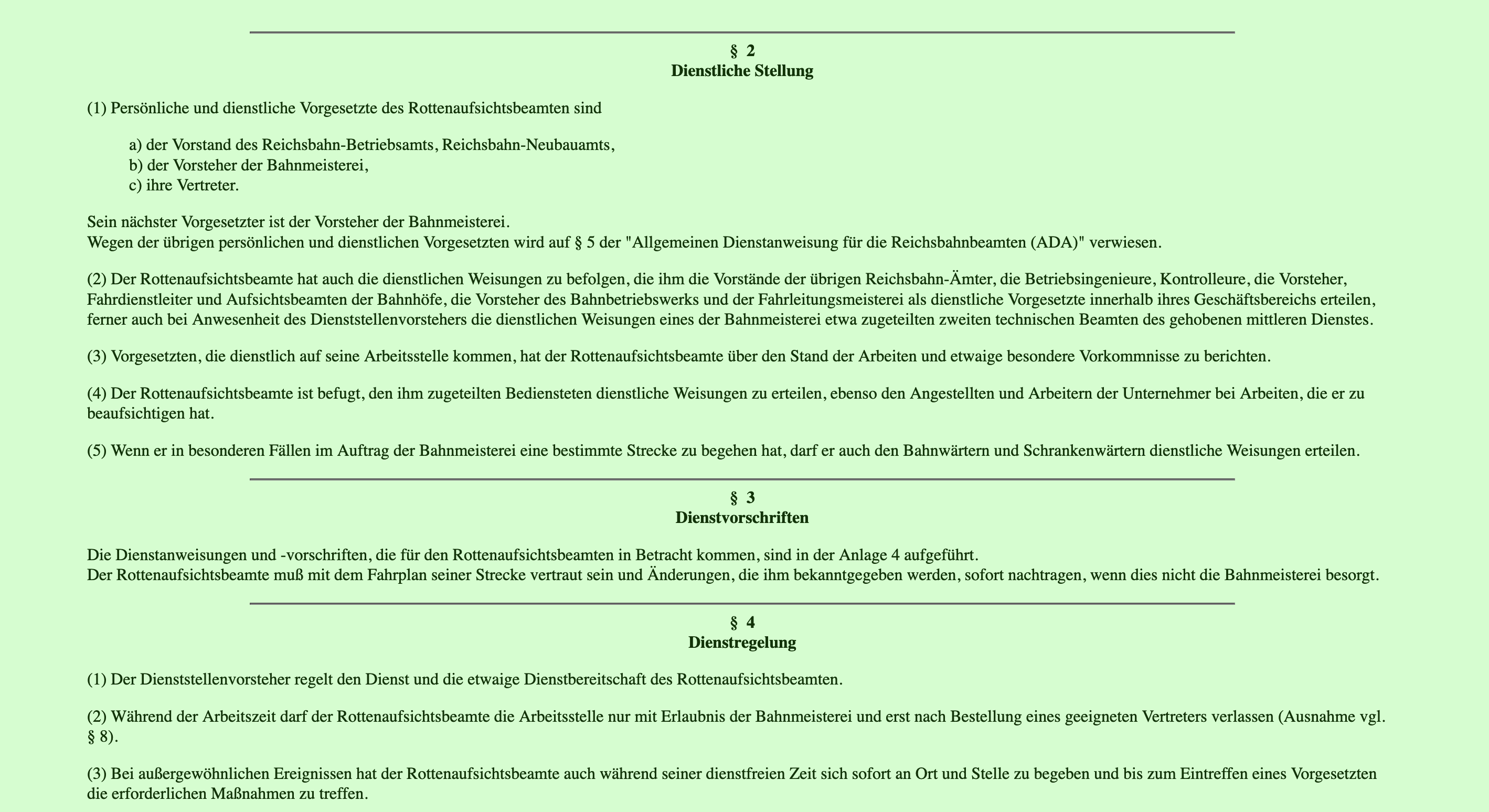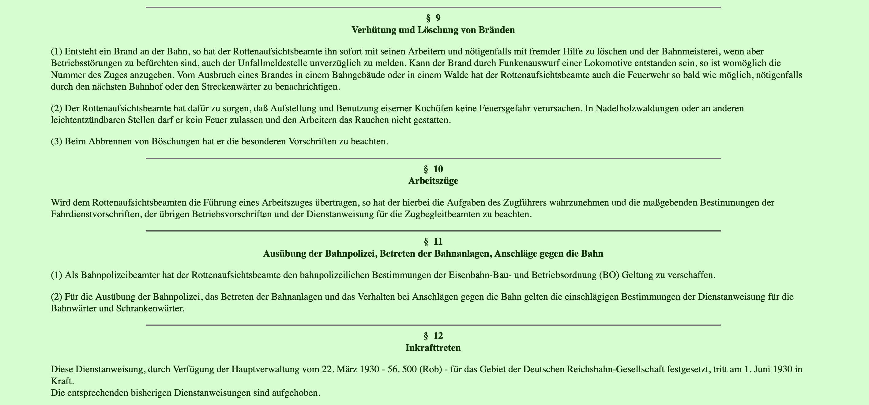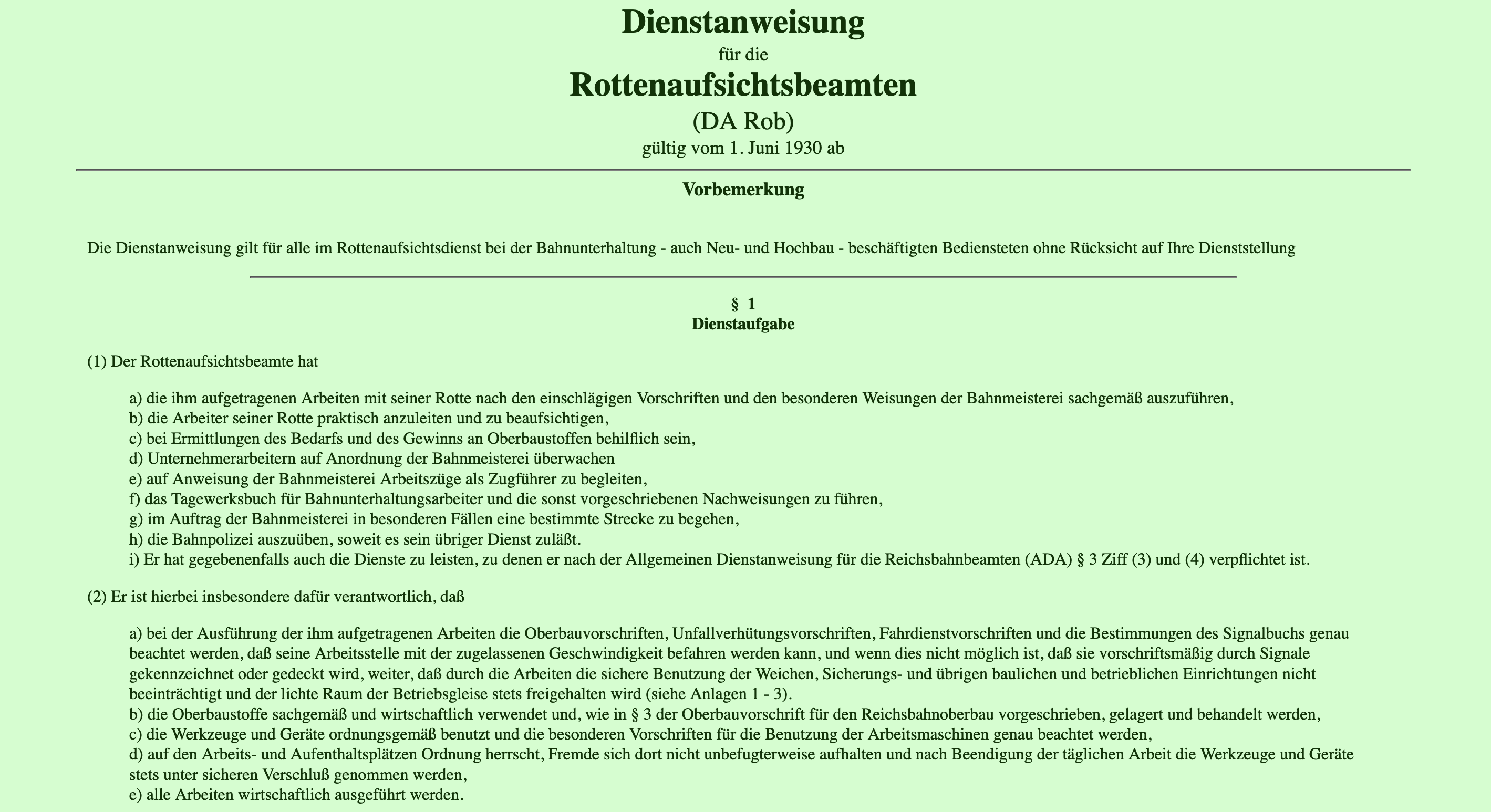 DV 020 Dienstanweisung für die Rottenaufsichtsbeamten vom 1. Juni 1930