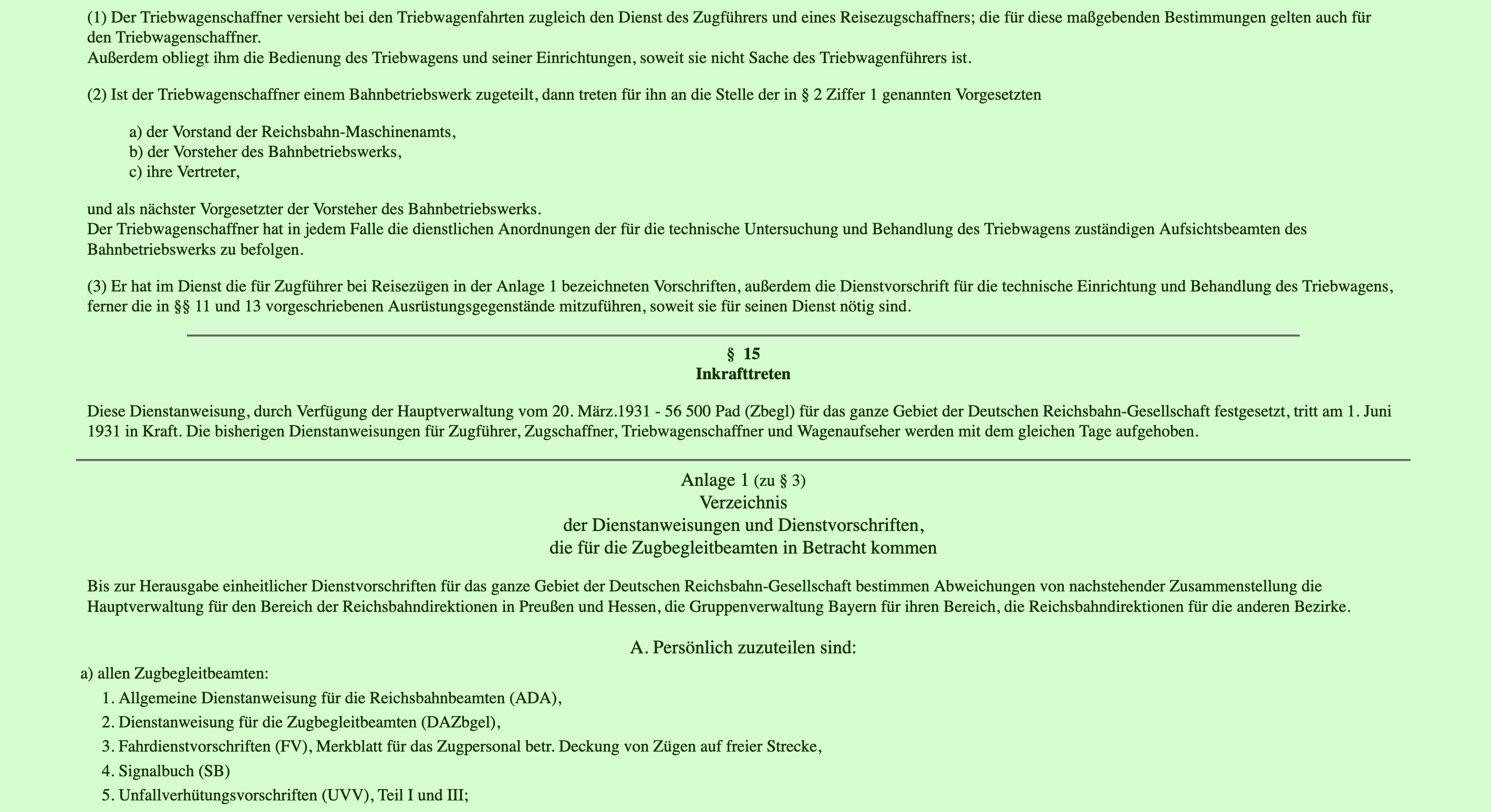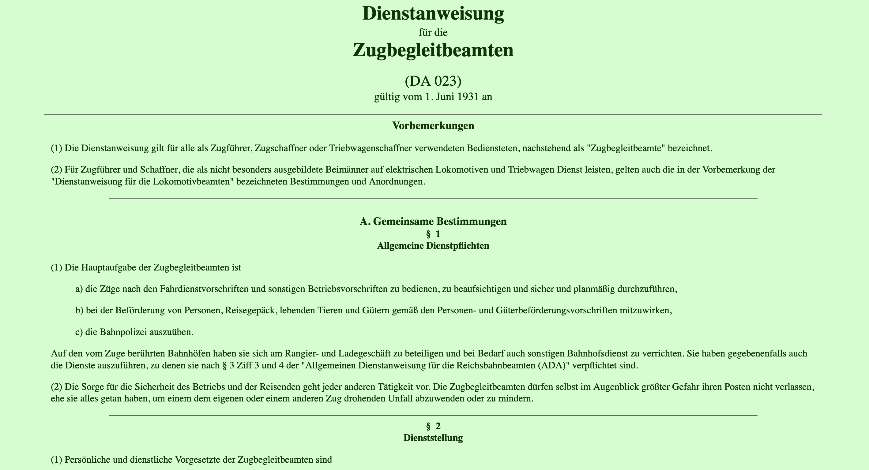 DV 023 Dienstanweisung für die Zugbegleitbeamten vom 1. Juni 1931