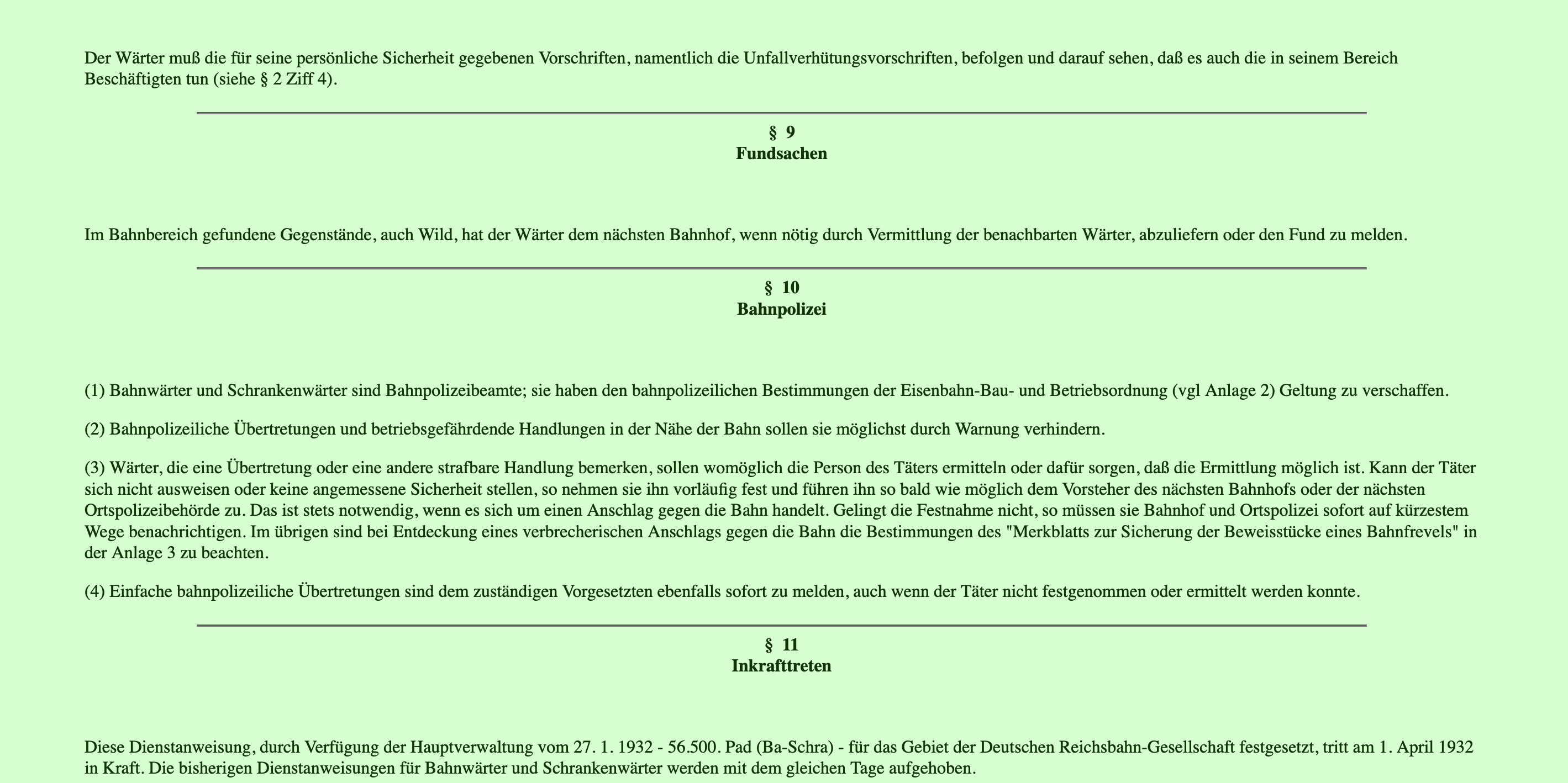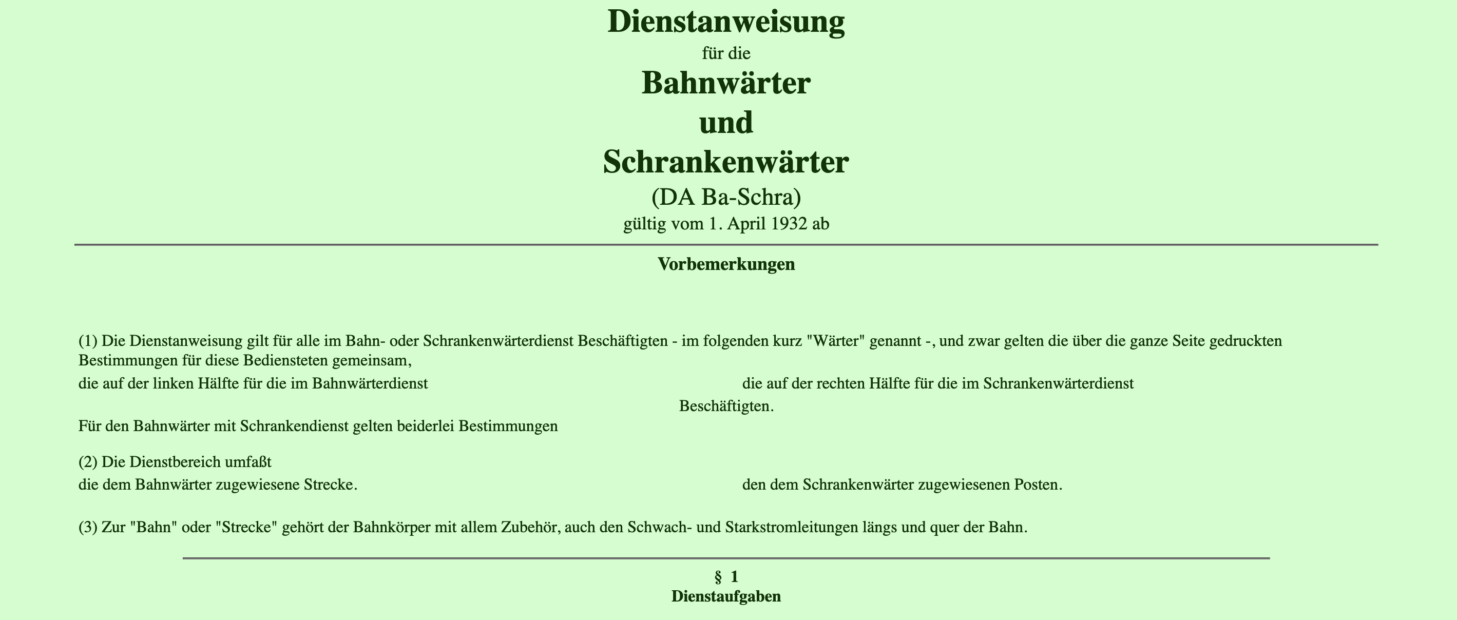 DV 025 Dienstanweisung für Bahnwärter und Schrankenwärter vom 1. April 1932
