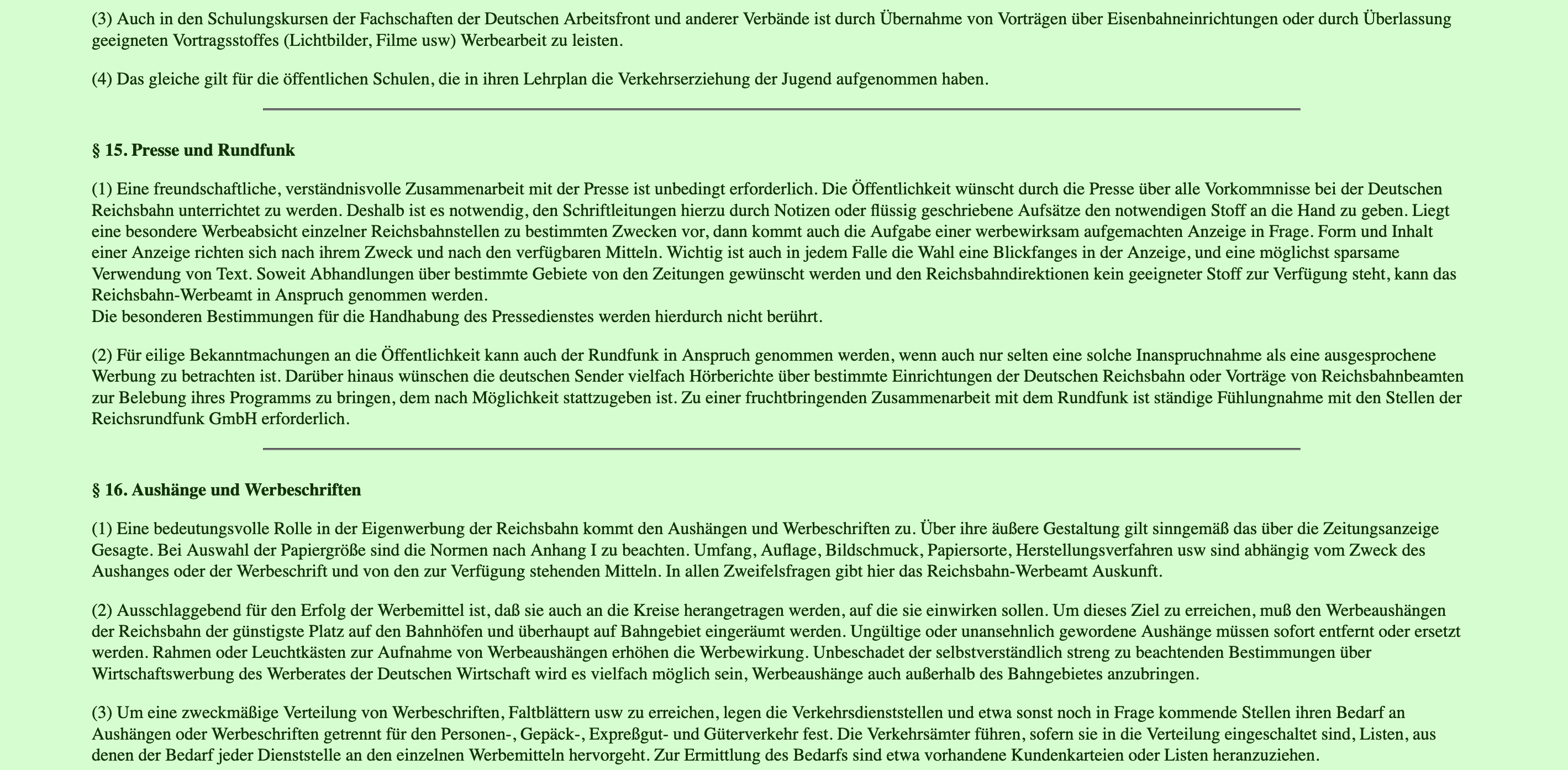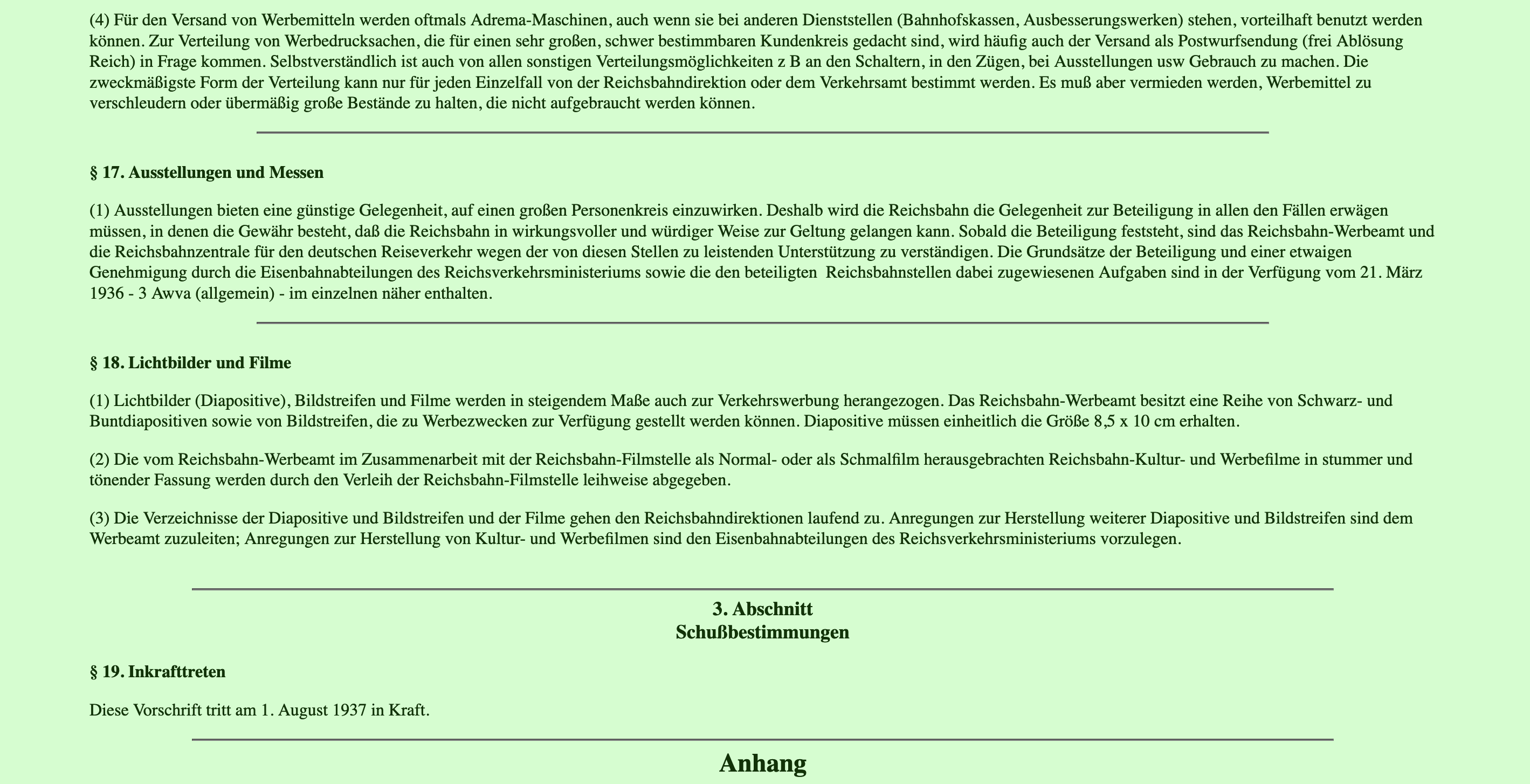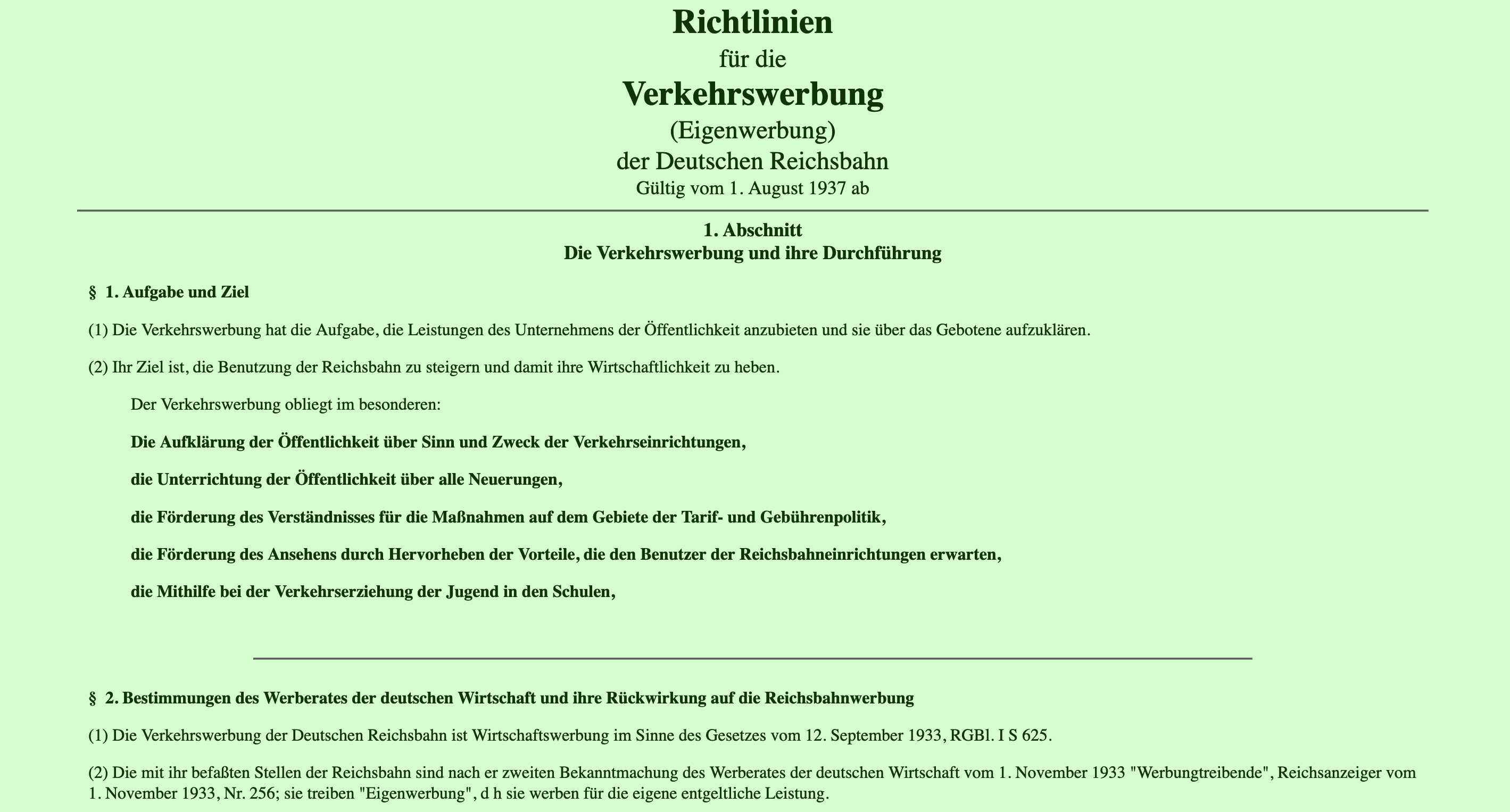 DV 165 Richtlinien für die Verkehrswerbung (Eigenwerbung) vom 1. August 1937