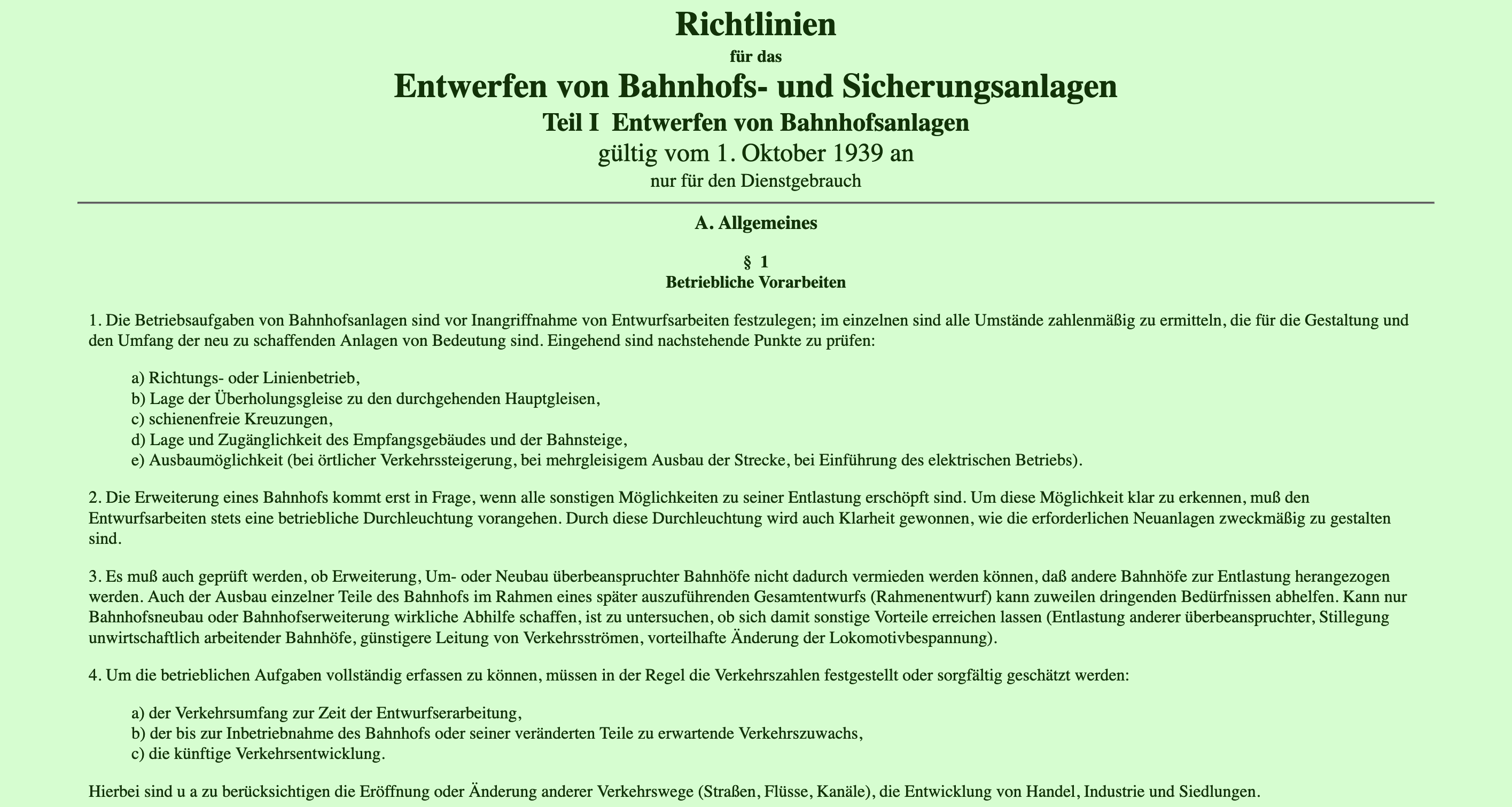 DV 427 Richtlinien für das Entwerfen von Bahnhofsanlagen vom 1. Oktober 1939