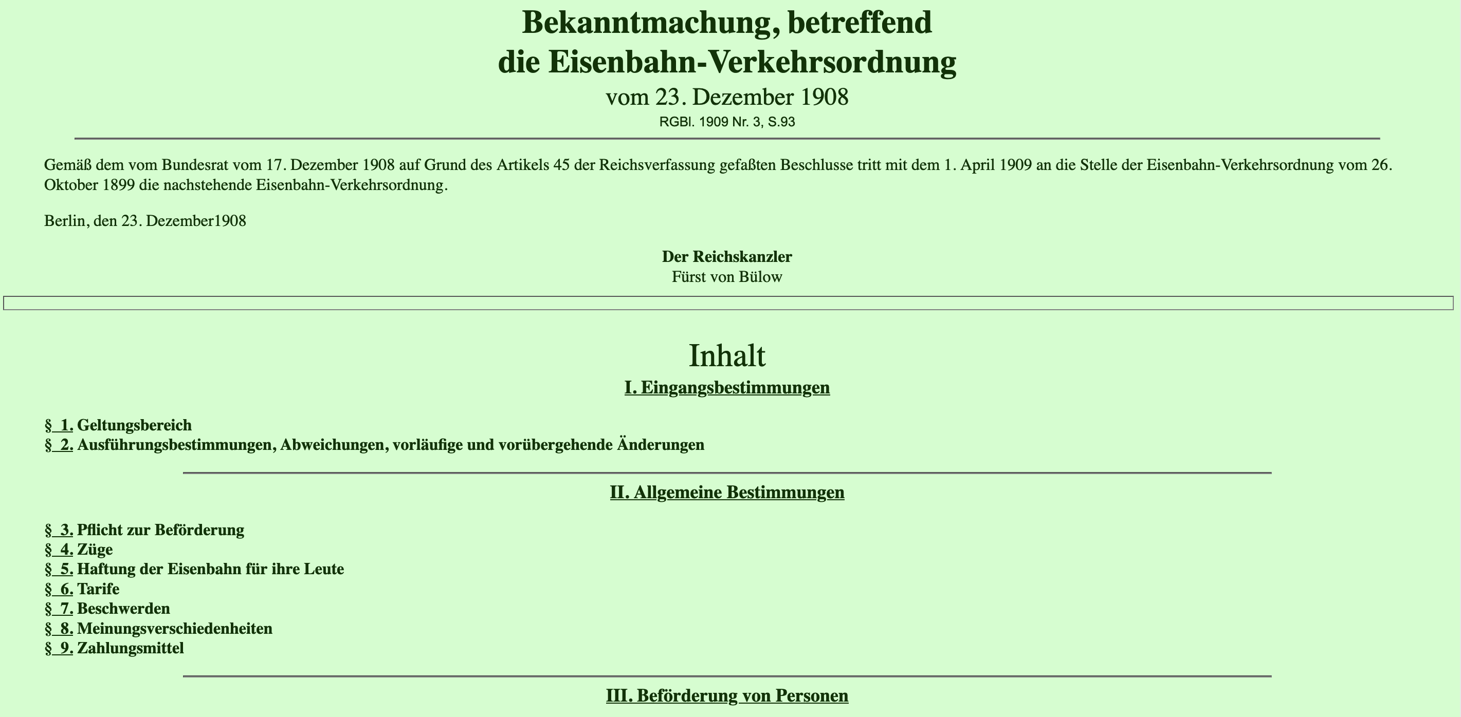 Eisenbahn-Verkehrsordnung vom 1. April 1909