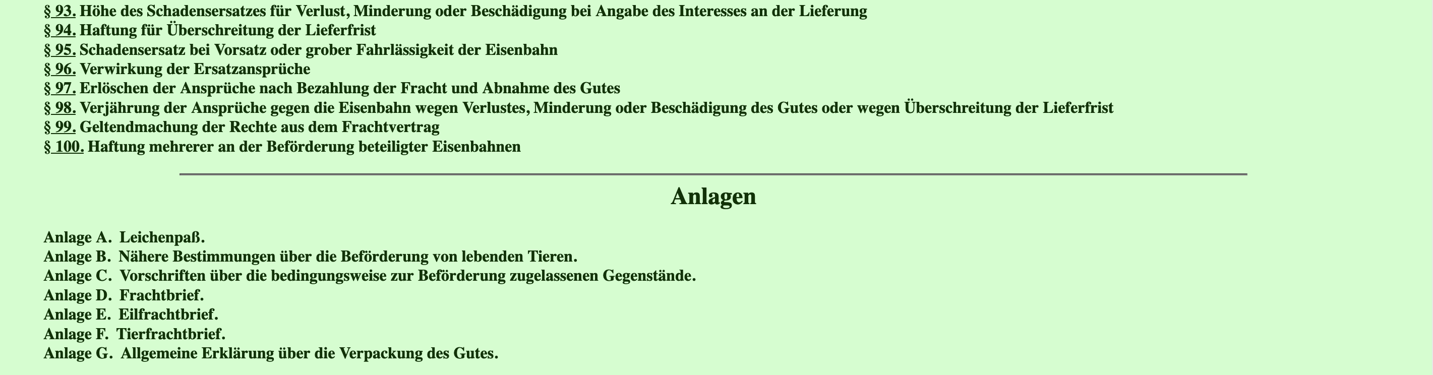 Anmerkung: Die Paragraphen § 1-100 sowie der Anlagen A - G werden nicht einzeln dargestellt.
