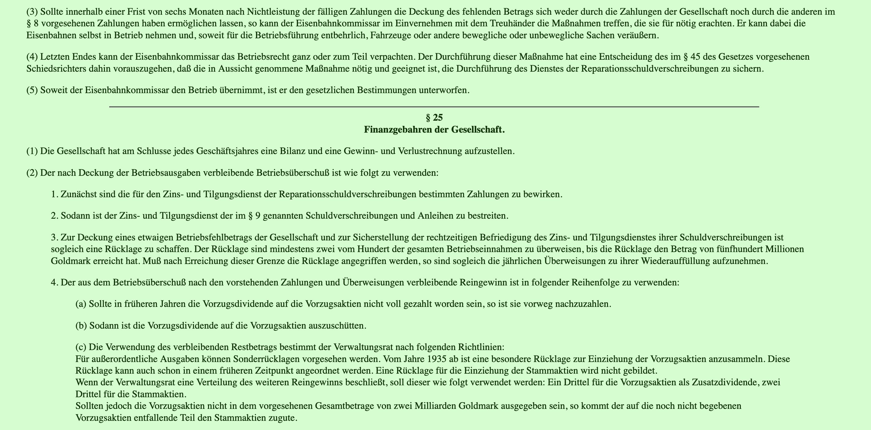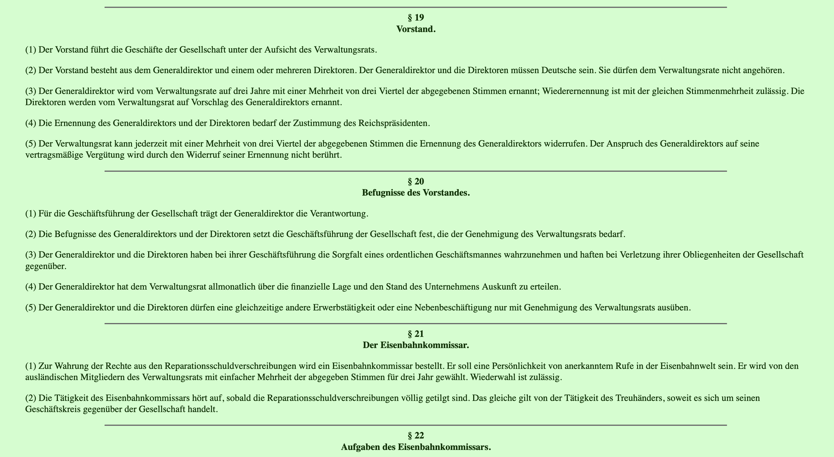 Die Gesellschaftssatzung als Anlage zum Reichsbahngesetz