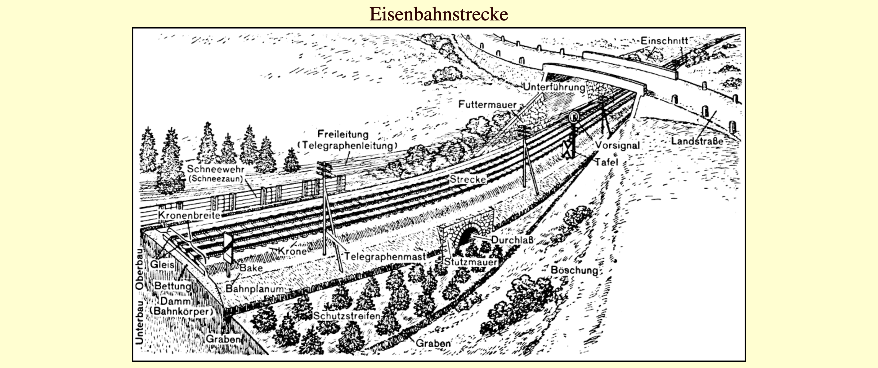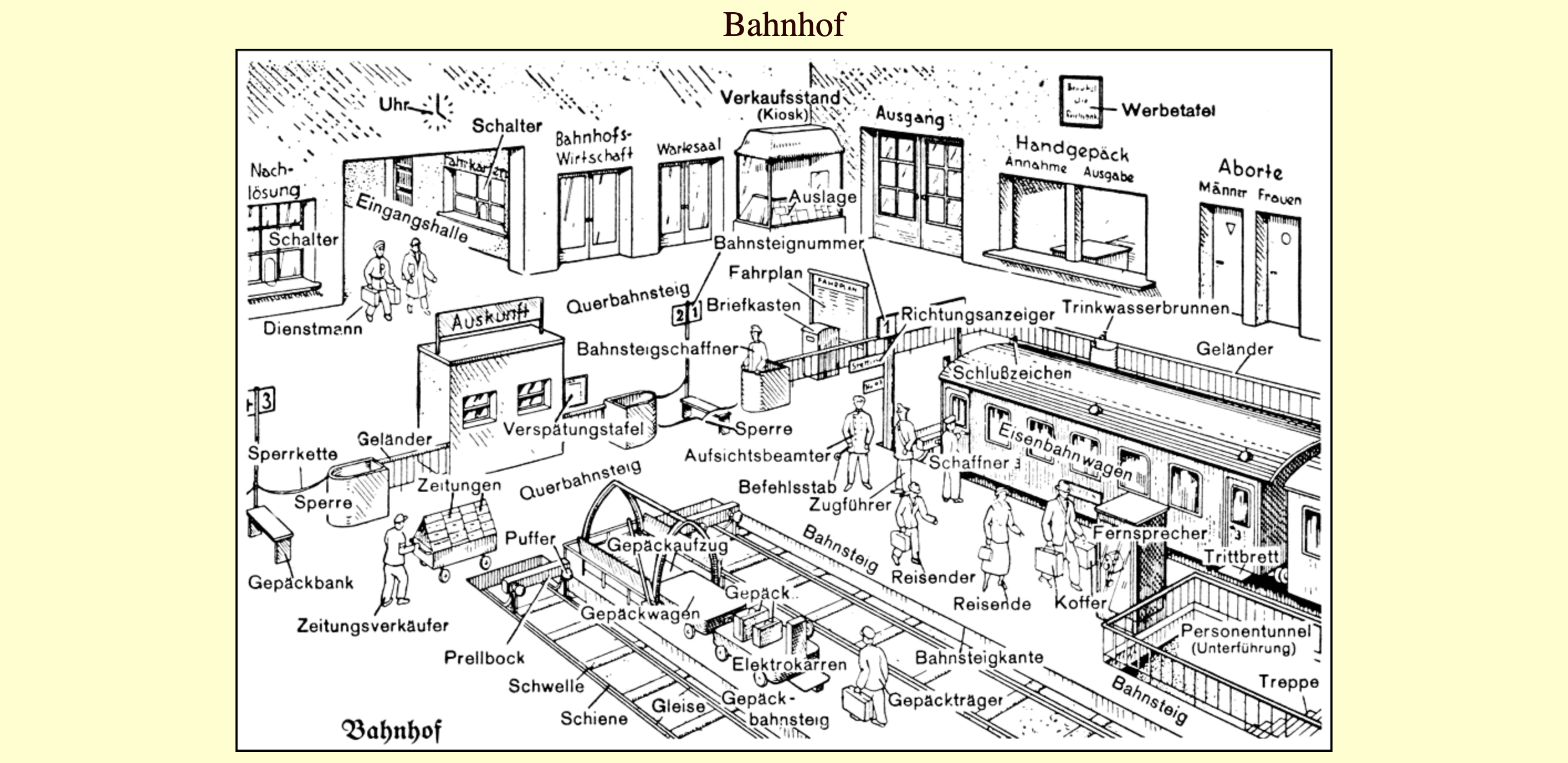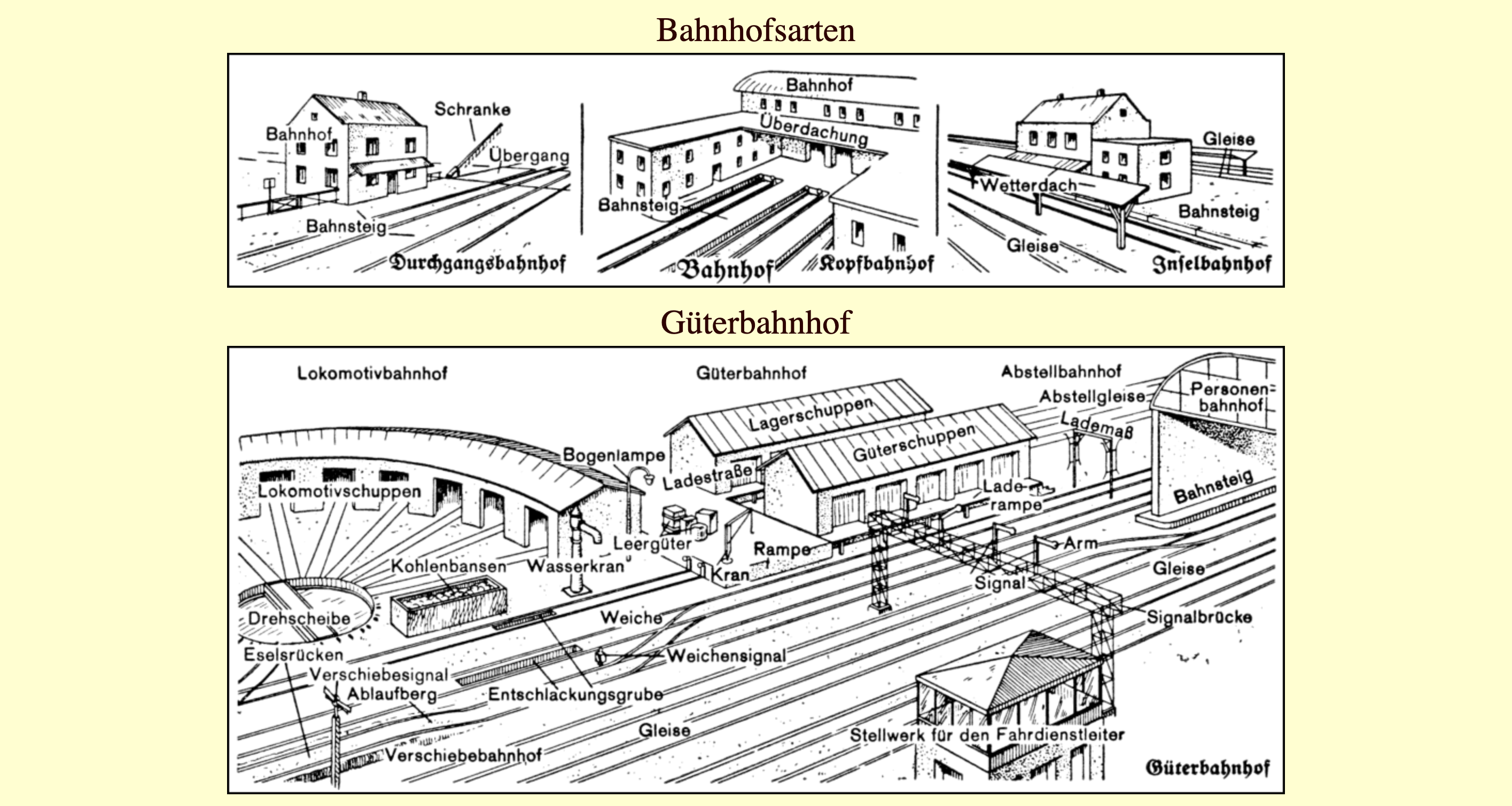 Grafische Darstellung vom Eisenbahn-Begriffen für Kinder (1935)