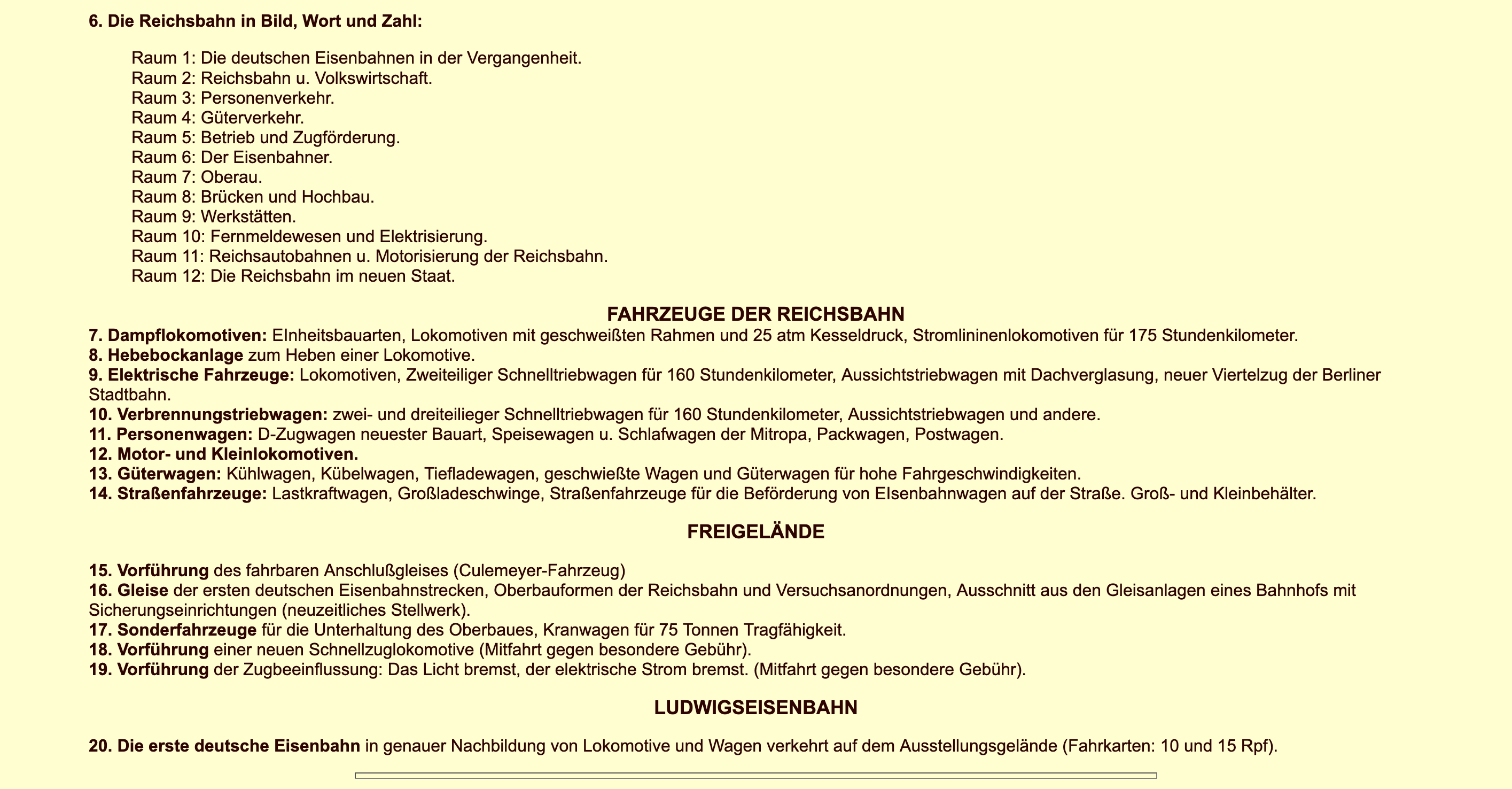Programm der Reichsbahn-Ausstellung "100 Jahre Deutsche Eisenbahnen" in Nürnberg 1935