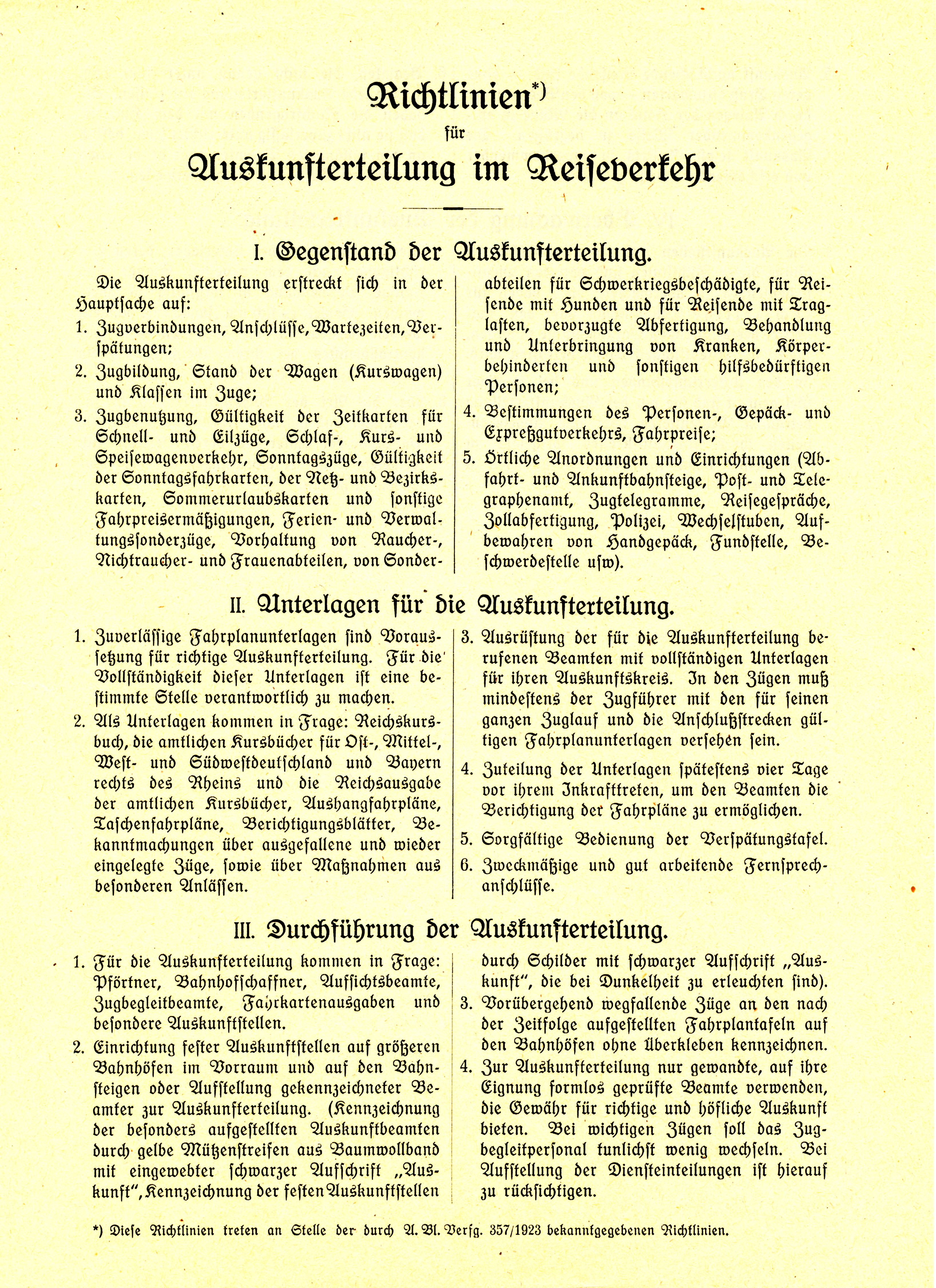 Richtlinien für Auskunfterteilung im Reiseverkehr