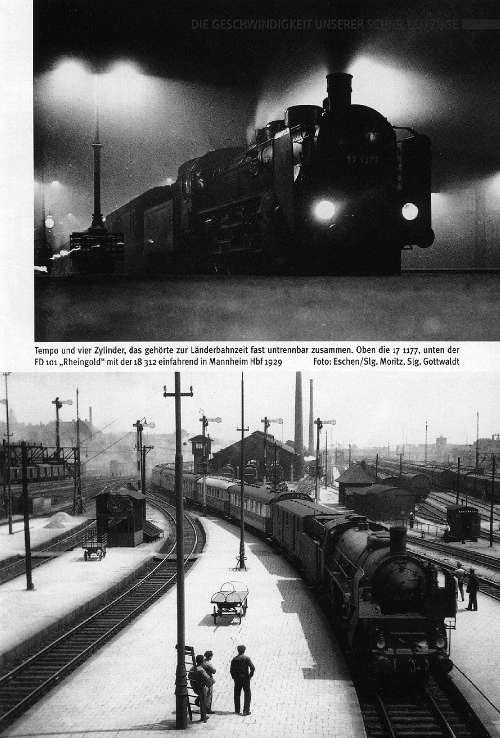 Der RHEINGOLD-Expreß von Amsterdam nach Basel wurde mit dem Sommerfahrplan 1928 eingeführt und stellte ein Konkurrenzangebot der Reichsbahn gegenüber ausländischen Bahngesellschaften dar, um Reisende schnell und bequem von den Nordsee-Fährhäfen und Amsterdam in die Schweiz zu befördern. Die landschaftlich attraktive Rheinstrecke stellte dabei die einzigartige Kulisse und das sagenumwobene Mittelrheintal gab dem Zug seinen wohlklingenden Namen. Die speziell konstruierten schweren Pullmann-Wagen boten dem zahlungskräftigen Fahrgast ein unverwechselbares Reiseerlebnis mit gehobenem Komfort. Jeder zweite Wagen des meist mit je zwei Wagen 1. Klasse und zwei Wagen 2. Klasse fahrenden Schnellzuges FFD 101/102 war mit einer Küche ausgestattet, von welcher aus jeweils die Fahrgäste in zwei Wagen bedient wurden. Es gab also keine speziellen Speisewagen; alle Fahrgäste wurden an ihren Sitzplätzen bewirtet und konnten dort die gesamte Fahrt genießen. Die Salon-Wagen waren innen sehr geschmackvoll und geräumig ausgestattet und die Sitze waren sehr komfortabel gepolstert. Neben der Ausstattung mit kleinen Tischen sind besonders die besonders breiten Fenster (1,4m in der 1. Klasse und 1,2m in der 2.Klasse) erwähnenswert. Die auffallende äußere Farbgestaltung der Fahrzeuge vervollständigte den Anspruch einer ganz besonderen Reise, welche sich wohl kaum ein Normalverdiener leisten konnte. Den Fahrgästen des RHEINGOLD-Expreß wurden zudem für Ihre Fahrt durchs Rheintal sehr informative Begleitbroschüren in verschiedenen Sprachen zum Kauf angeboten, in denen ihnen die zahlreichen vom Zug aus erkennbaren Sehenswürdigkeiten der 820 km langen Strecke von Hoek van Holland bis Basel beschrieben wurden. Die planmäßige Fahrzeit für die Strecke betrug rund 12 Stunden.