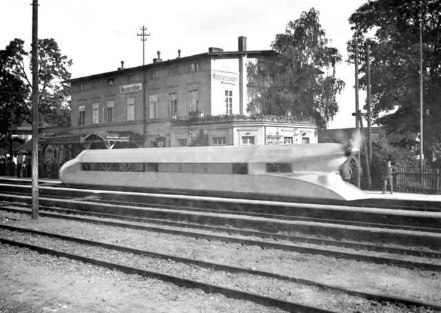 Menschentrauben am S-Bahnsteig Heerstraße in Berlin am 21.6.1931 nach der Recordfahrt des Schienenzeppelins