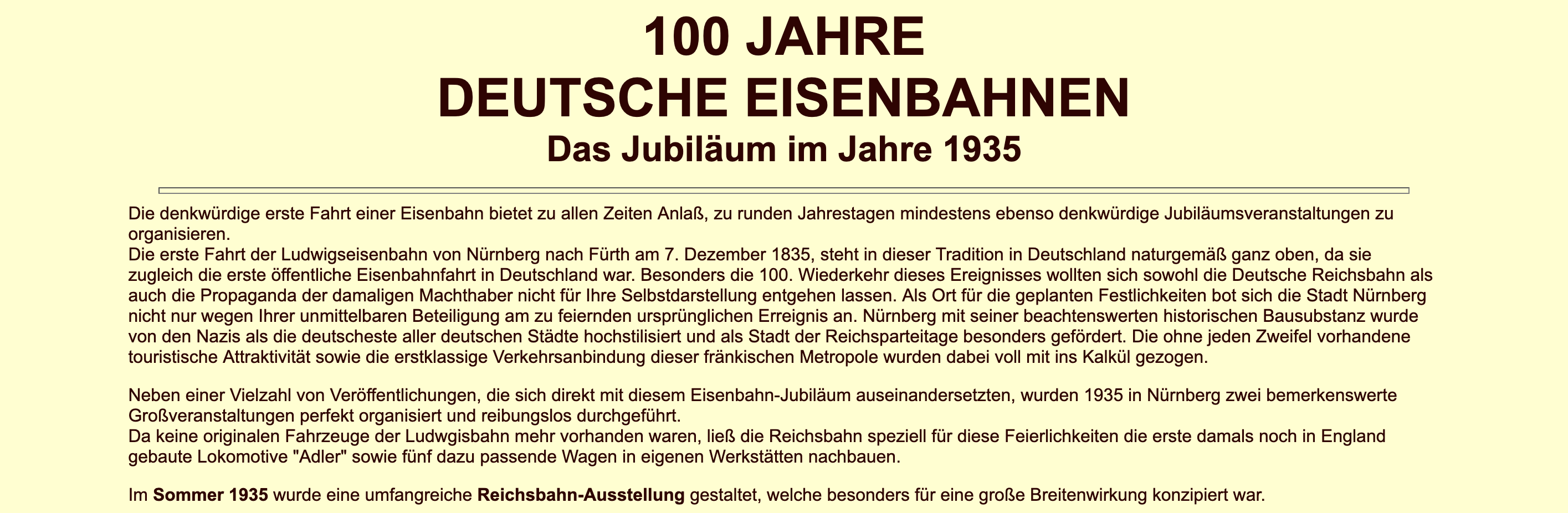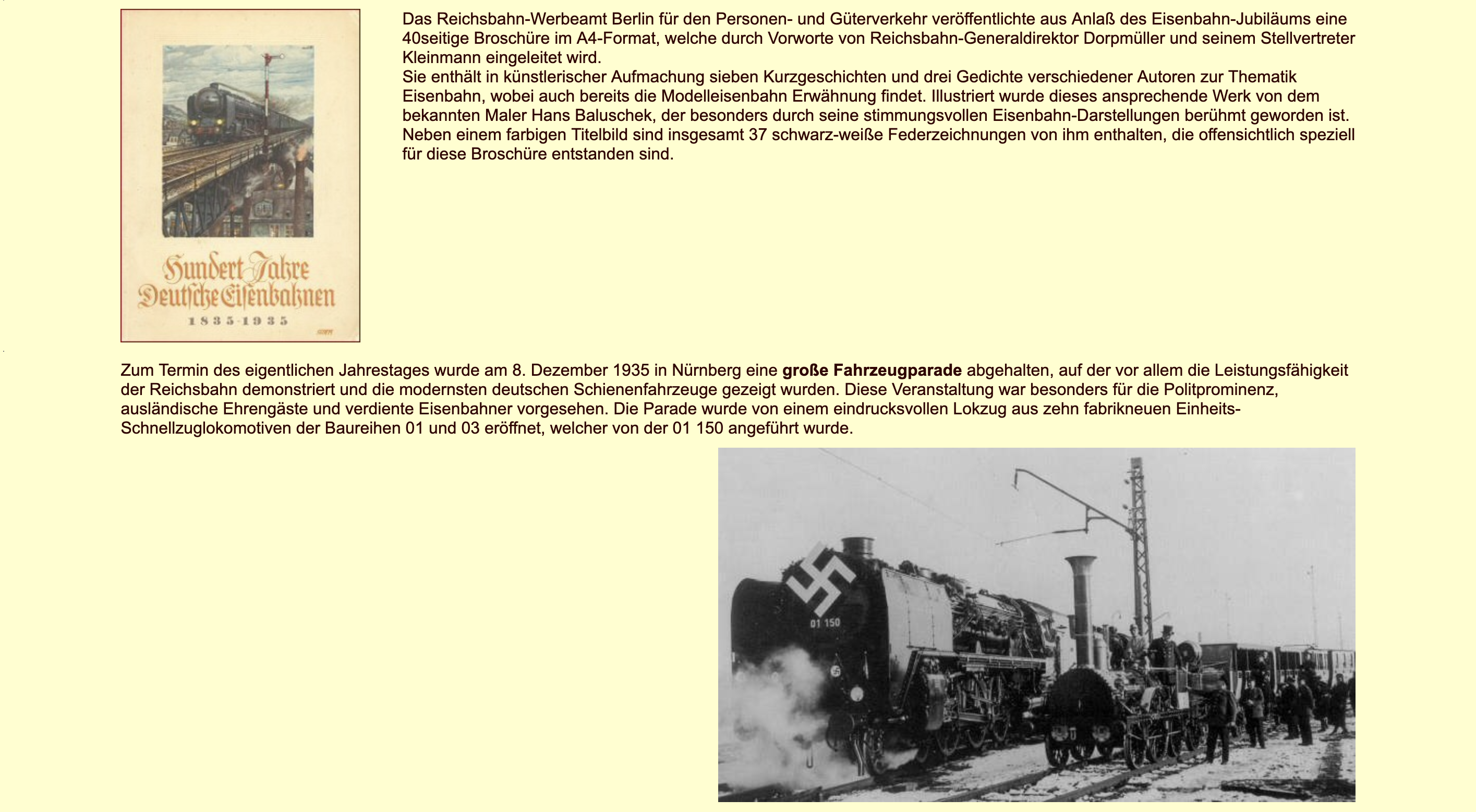 Die Jubiläums-Feierlichkeiten 100 Jahre Deutsche Eisenbahnen 1935