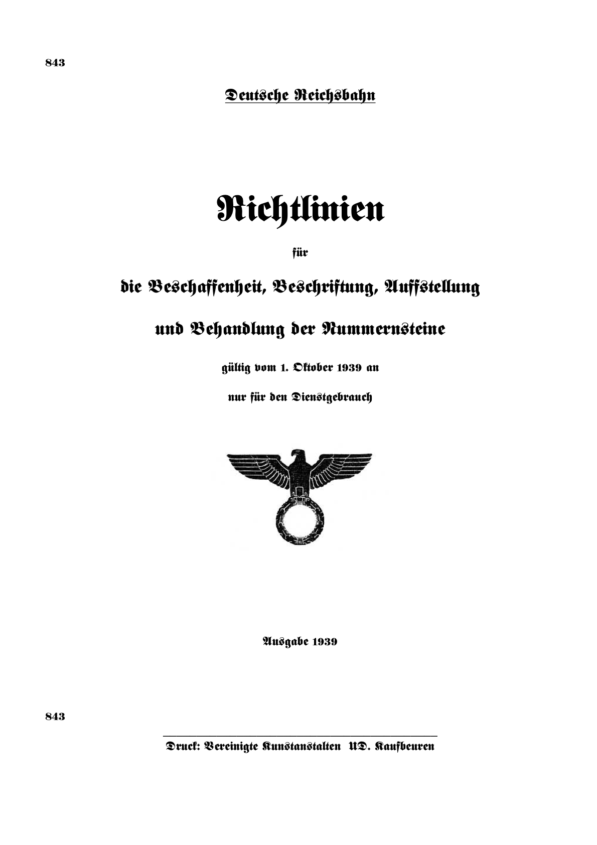 DV 843 Richtlinien für Nummernsteine vom 1. Oktober 1939
