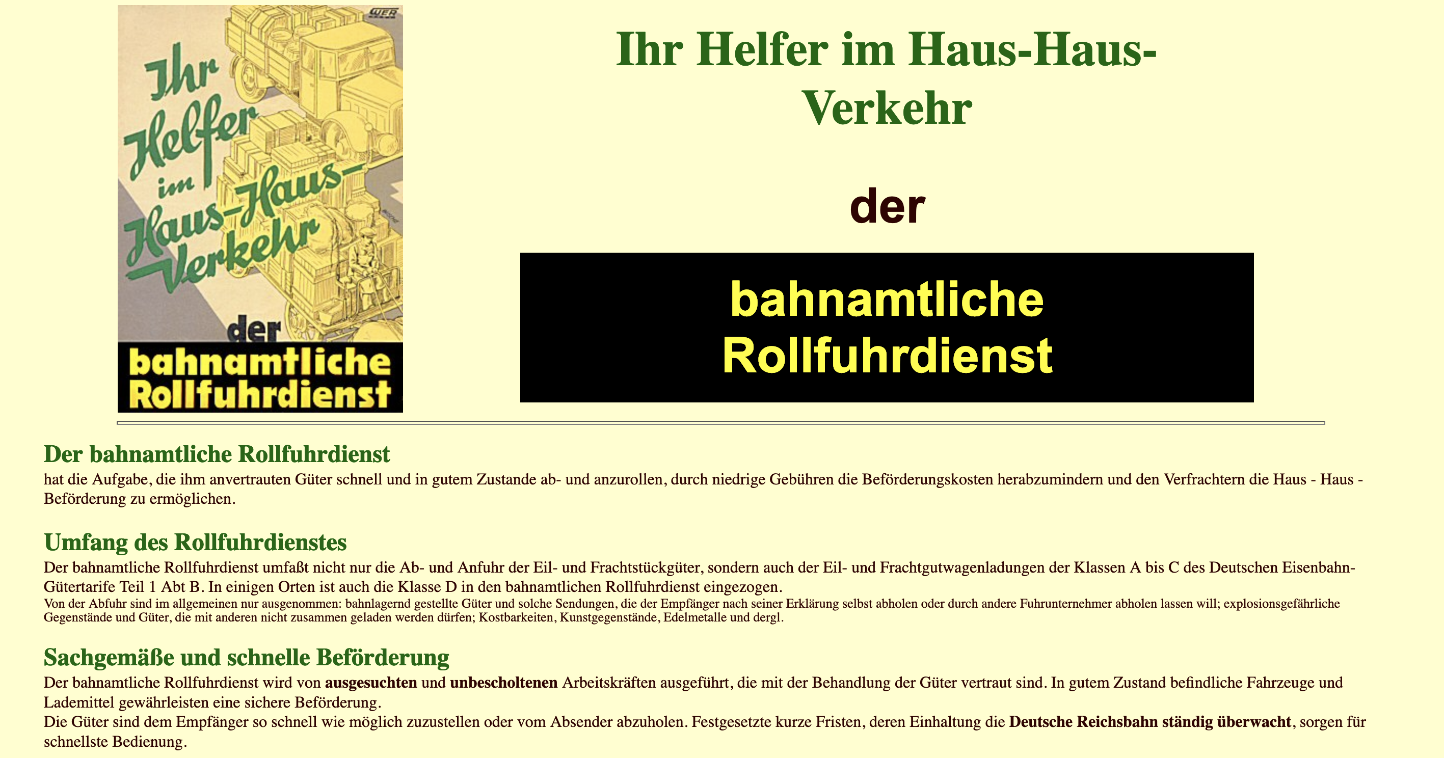 Werbeprospekt "Der bahnamtliche Rollfuhrdienst" (etwa 1937)