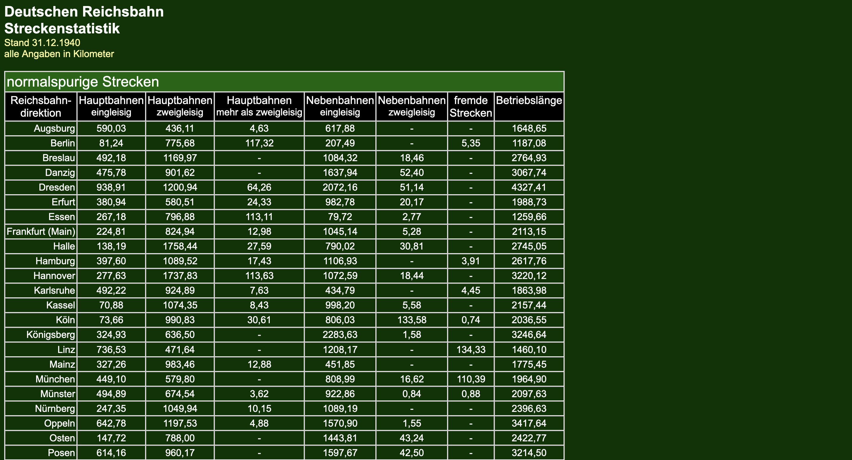 Die Streckenstatistik der Deutschen Reichsbahn 1940