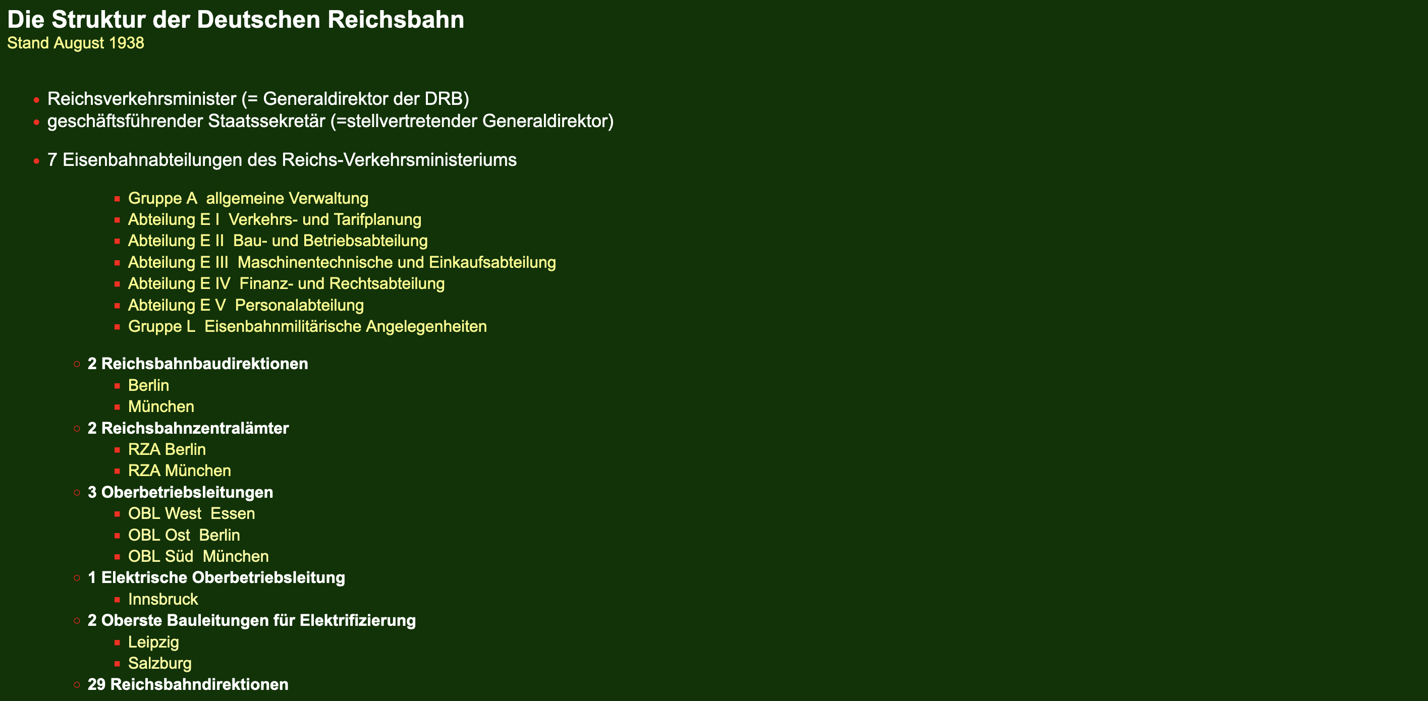Die Struktur der Deutschen Reichsbahn 1938