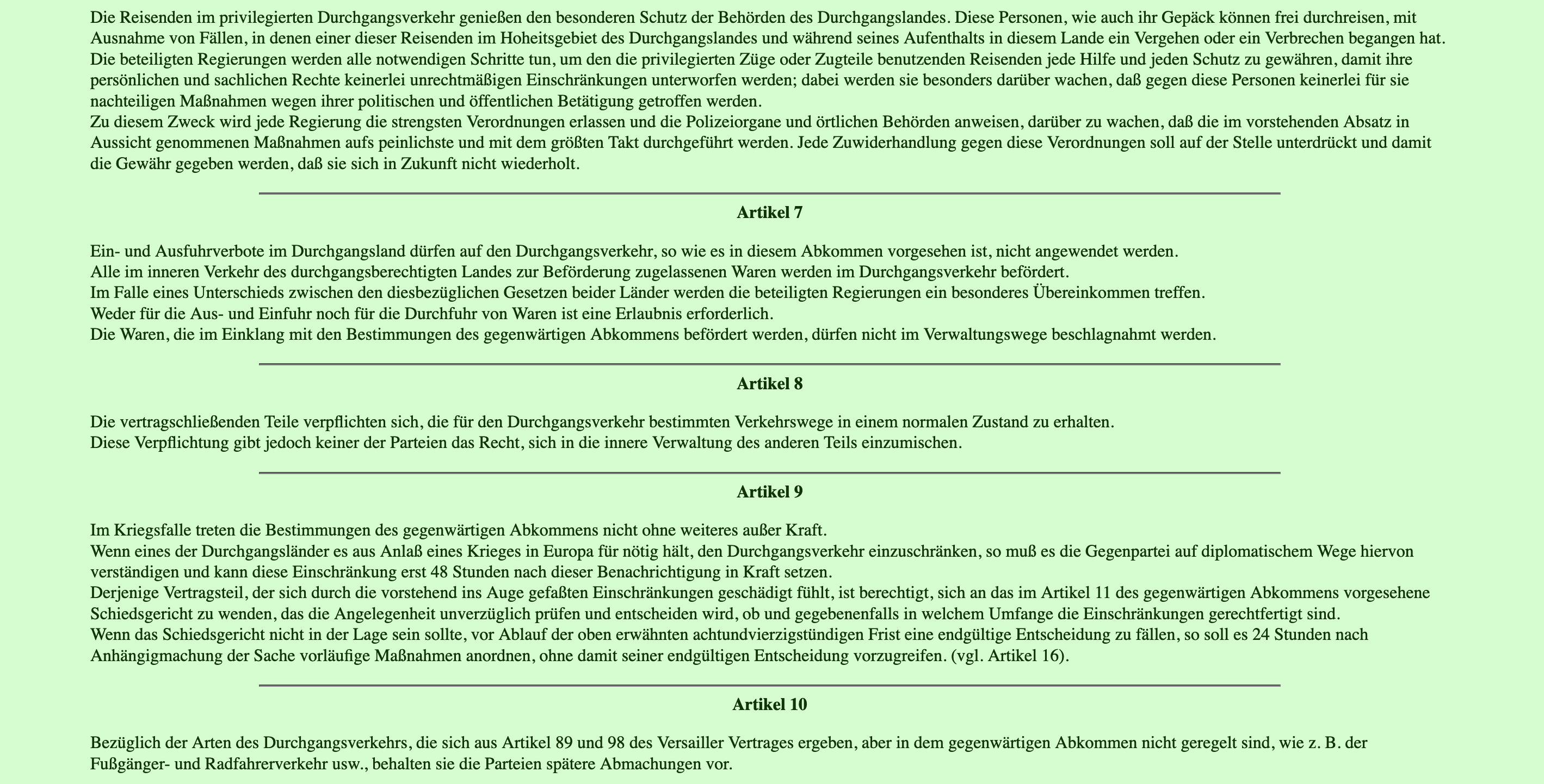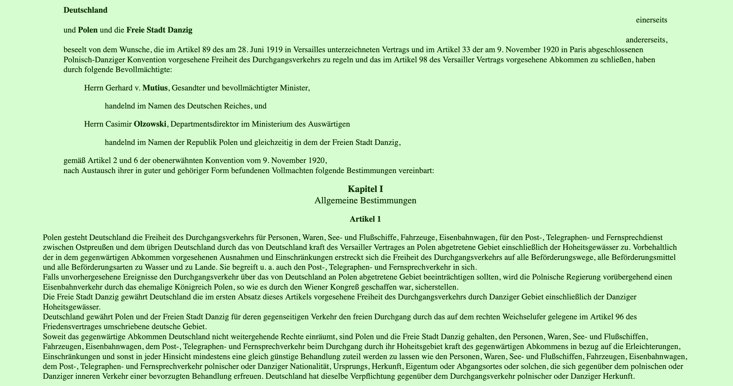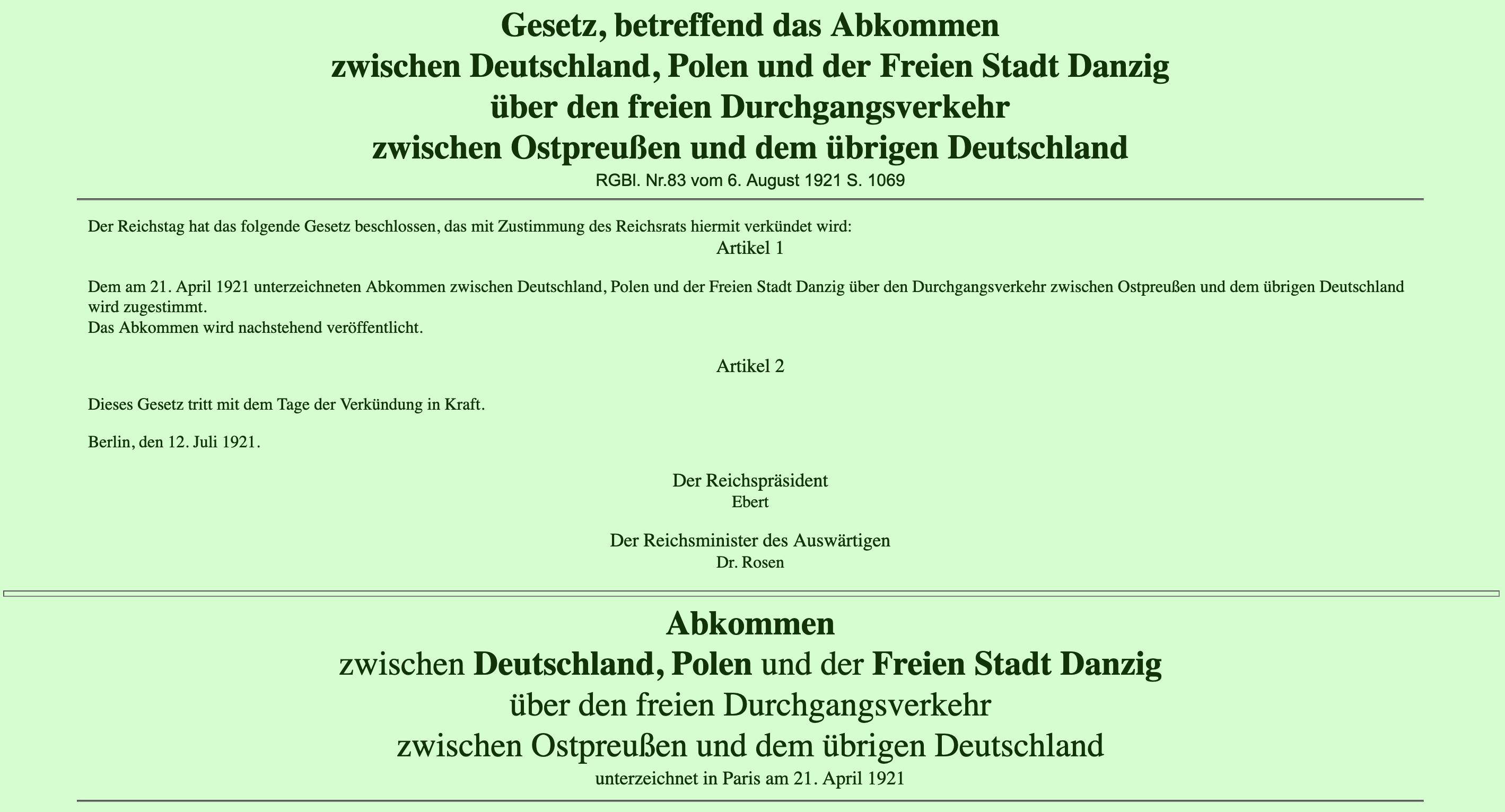 Abkommen über den freien Durchgangsverkehr zwischen Ostpreußen und dem übrigen Deutschland vom 21. April 1921