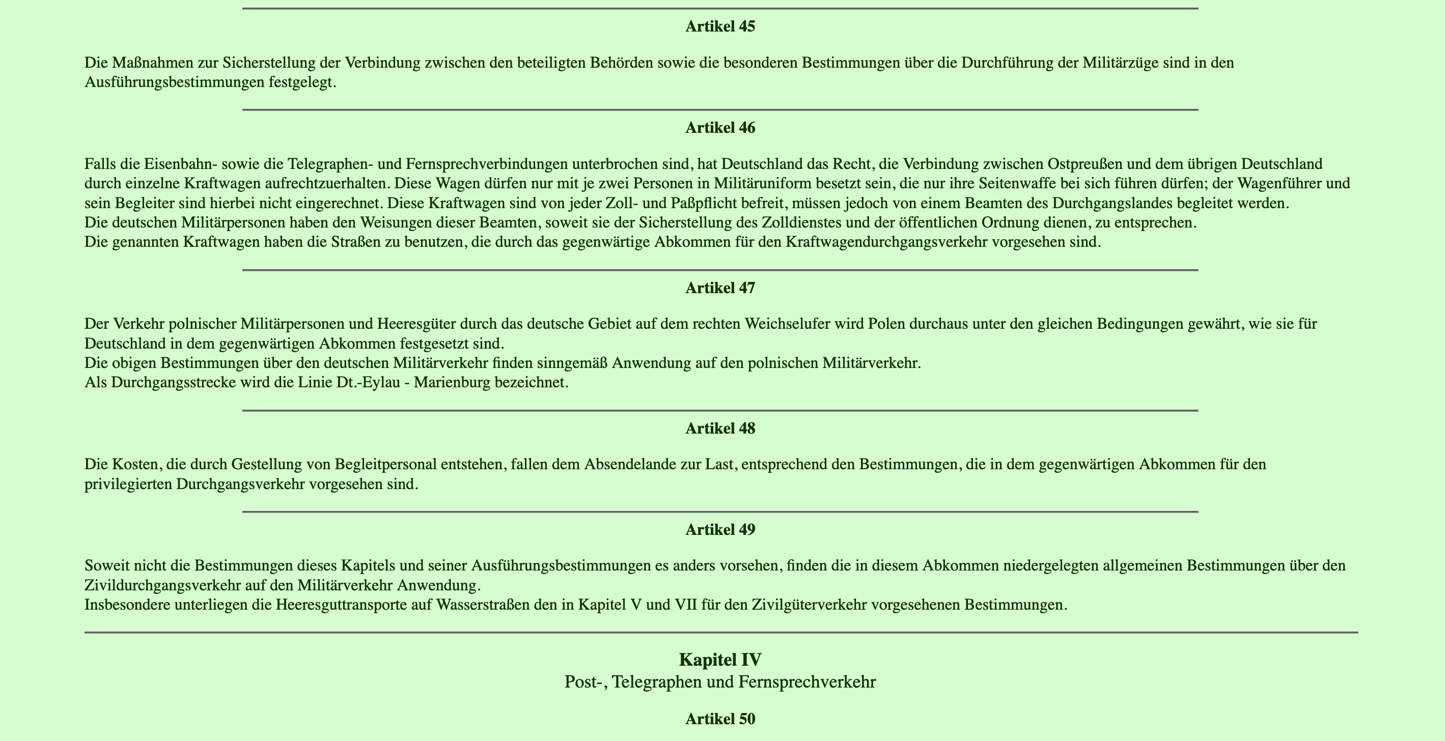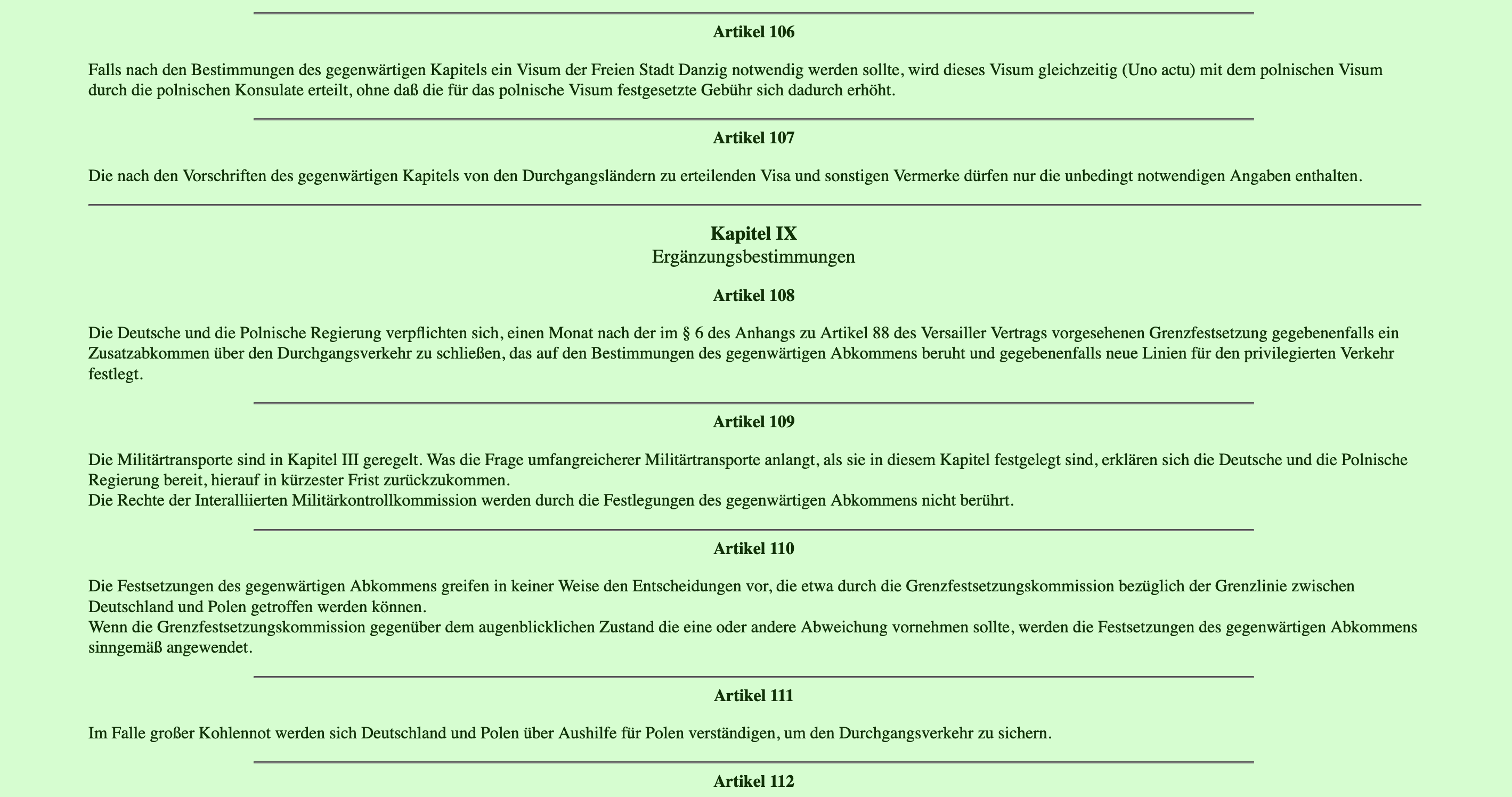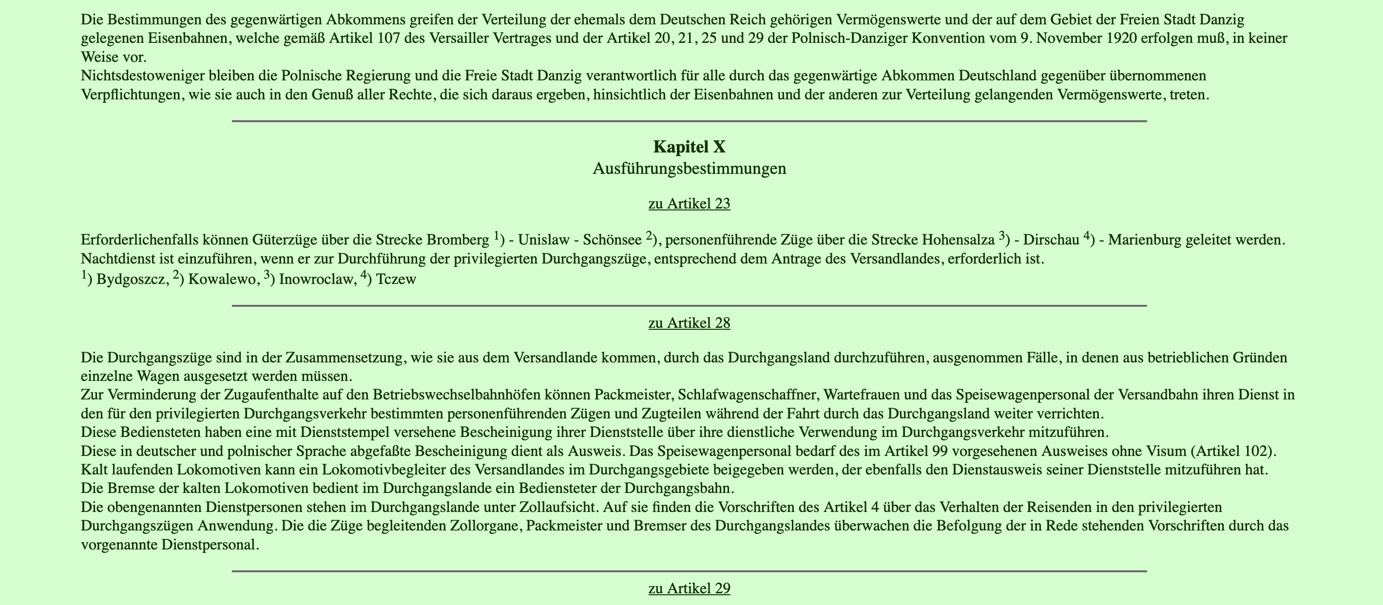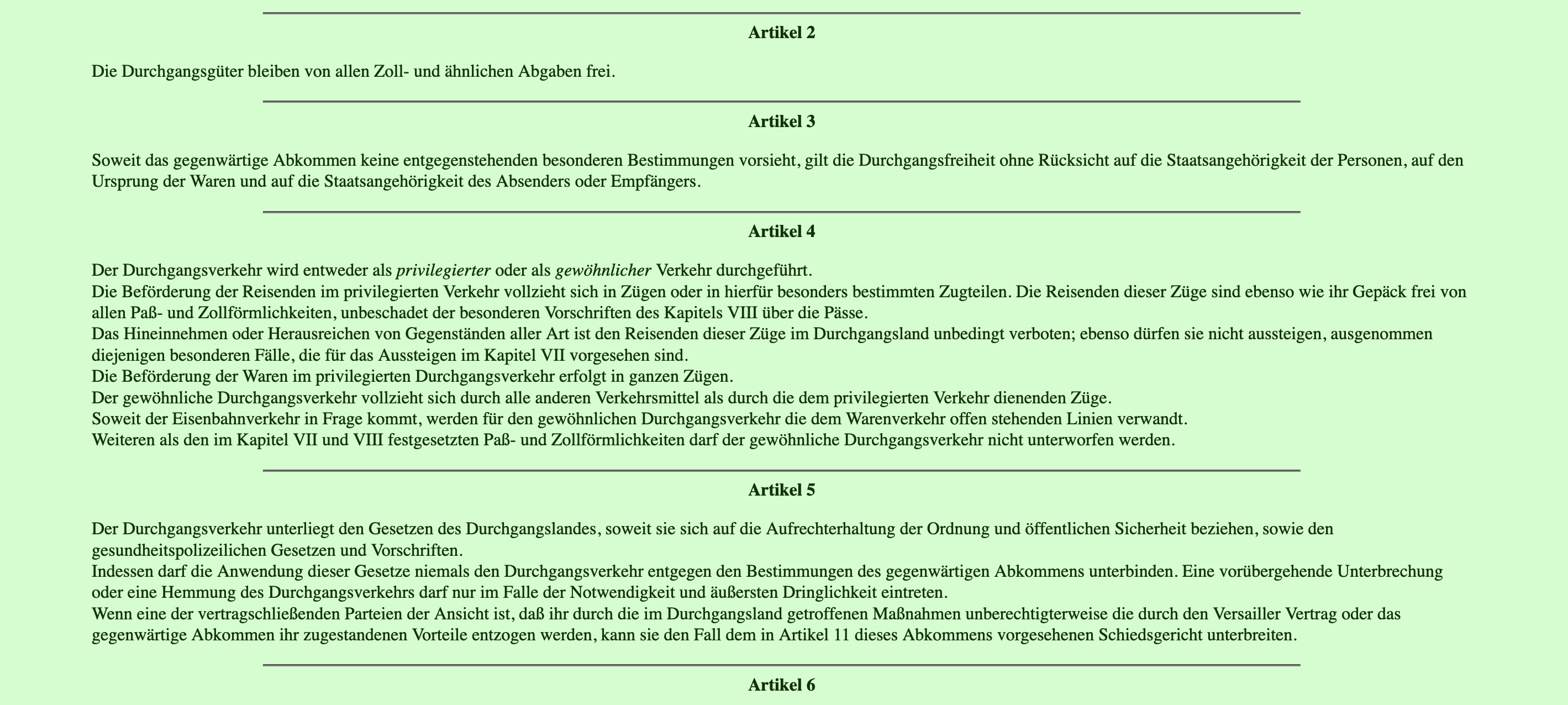 Abkommen über den freien Durchgangsverkehr zwischen Ostpreußen und dem übrigen Deutschland vom 21. April 1921