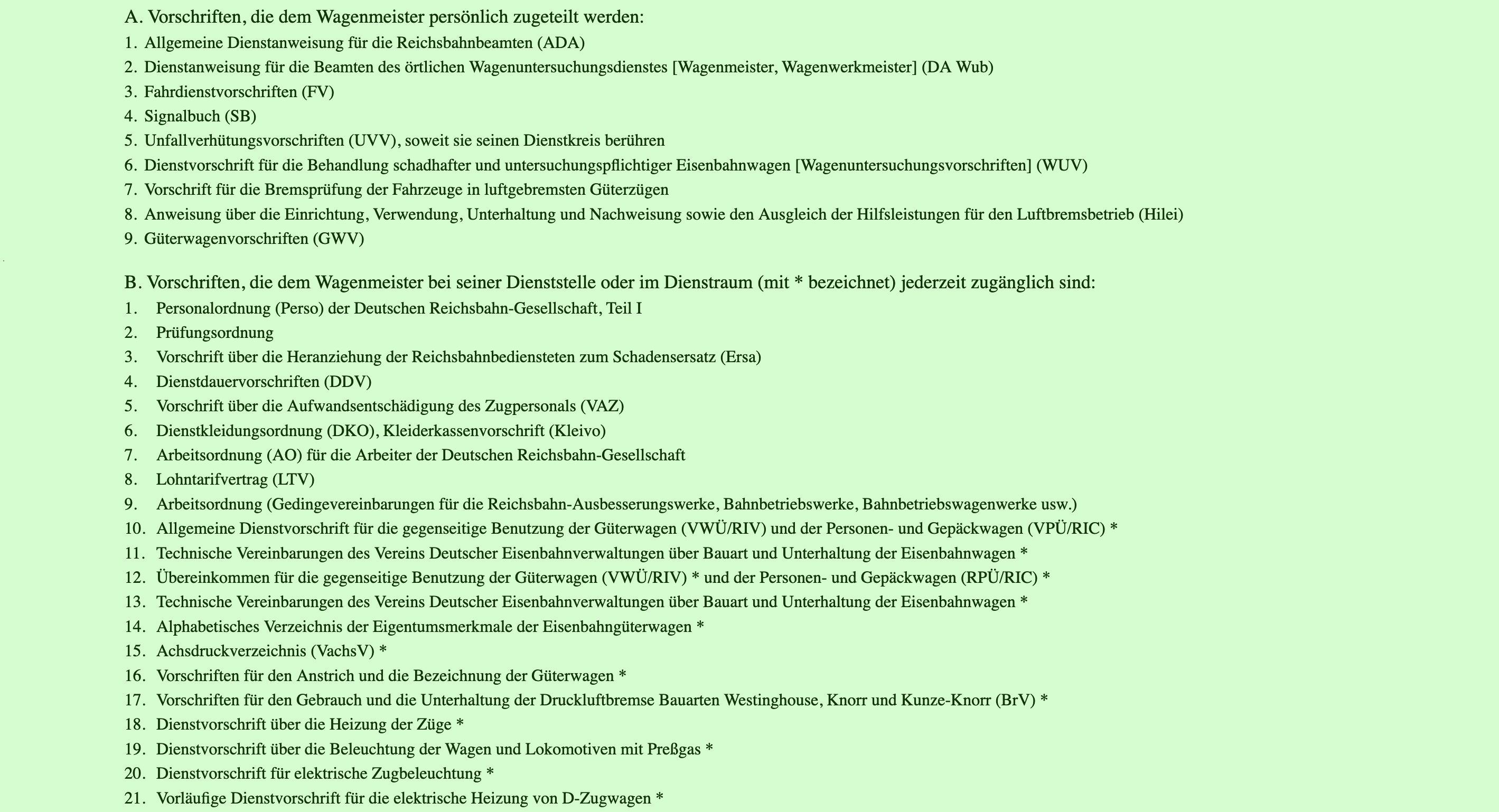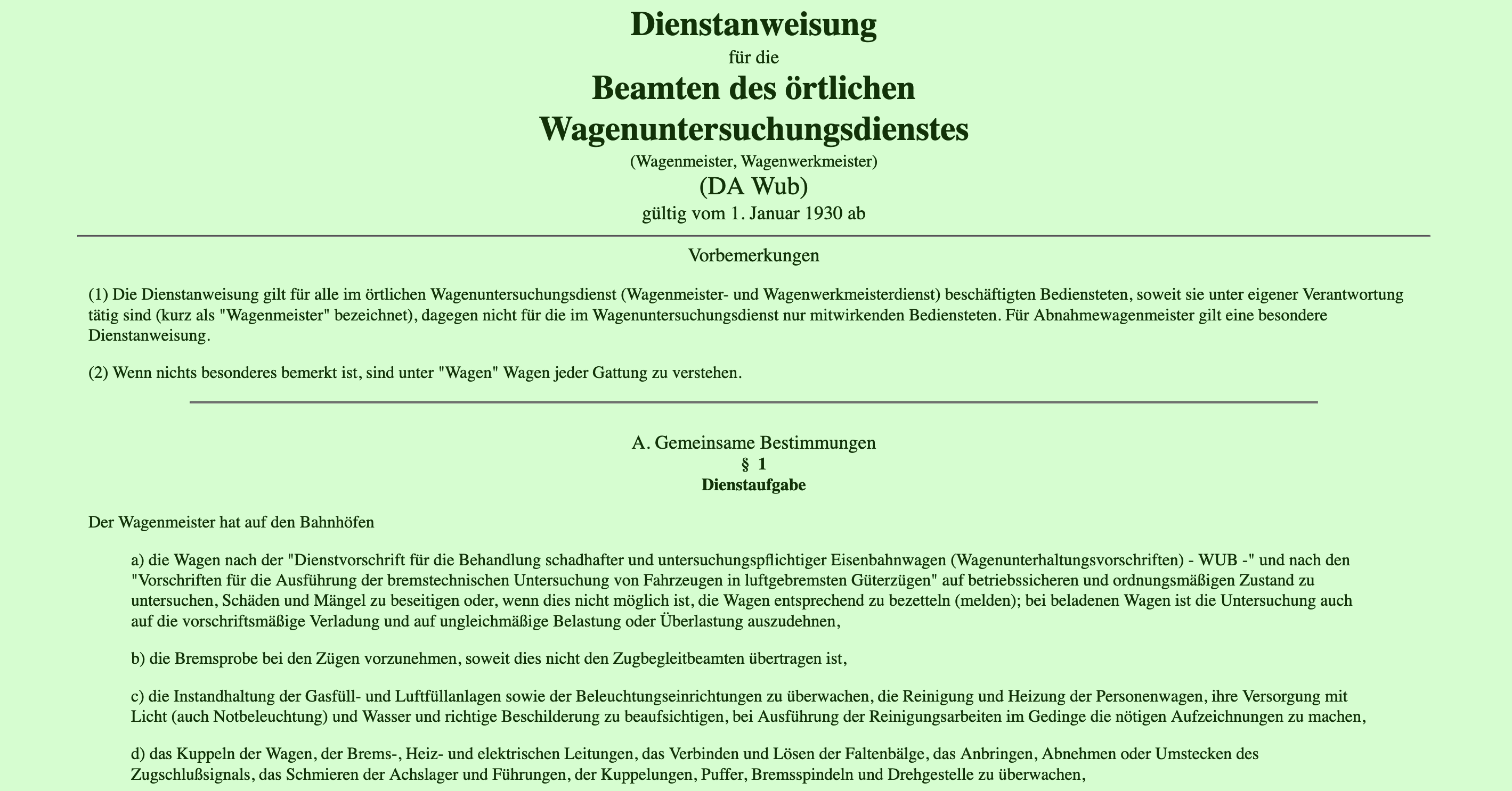 DV 017 Dienstanweisung für Wagenmeister vom 1. Januar 1930