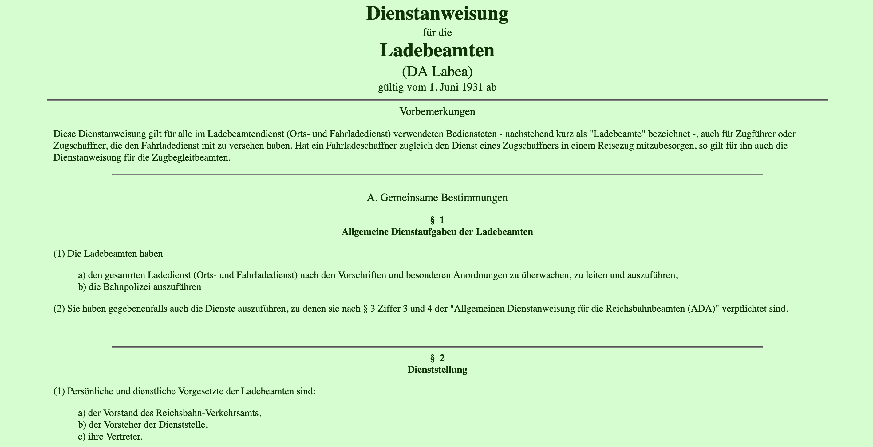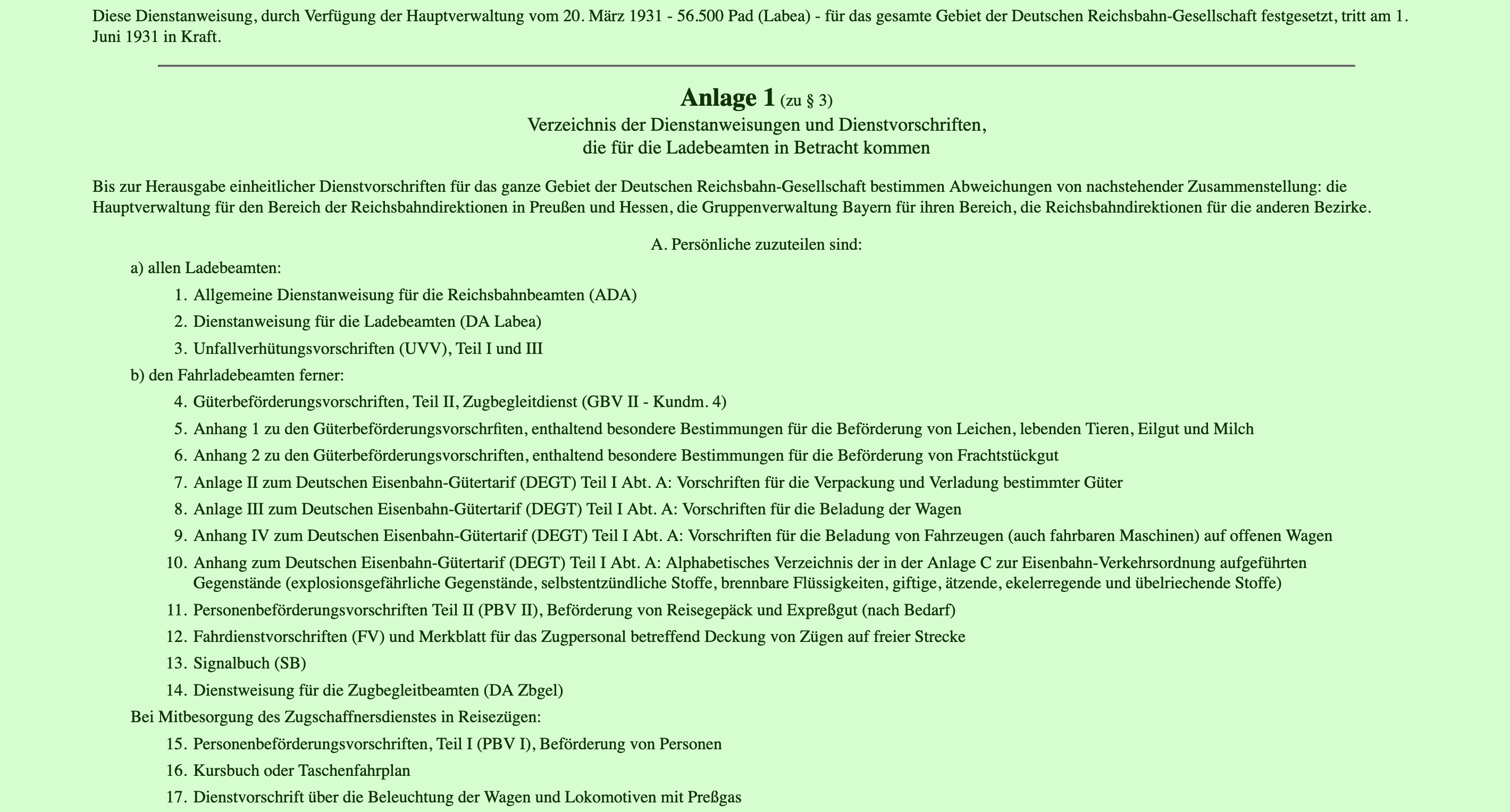 DV 024 Dienstanweisung für die Ladebeamten vom 1. Juni 1931