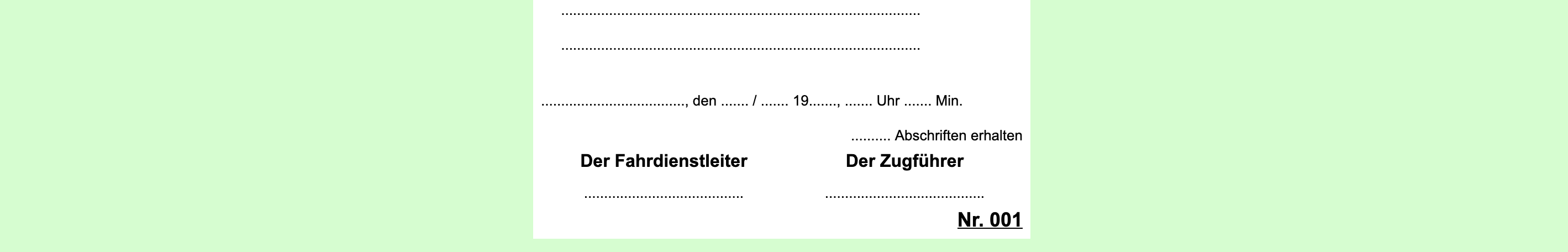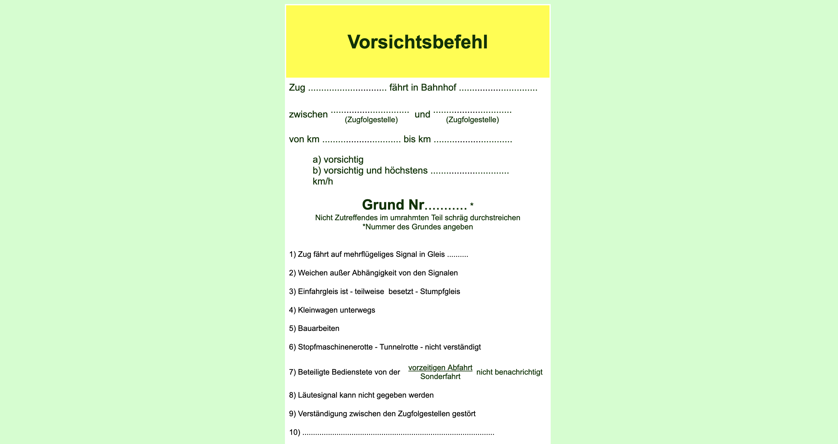 DV 408 Anlage 7 Vorsichtsbefehl (zu § 10 (5))
