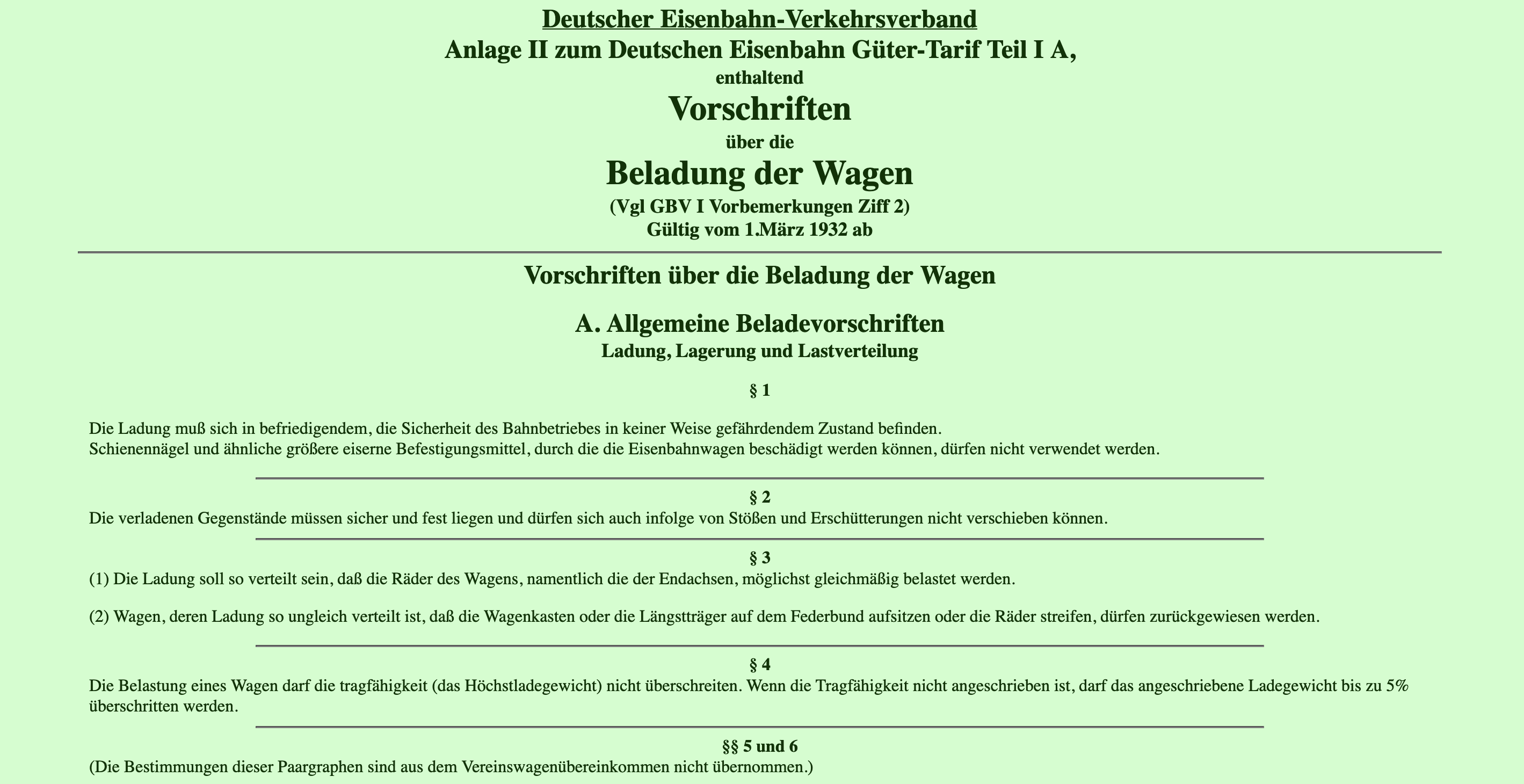 DV 607 Vorschriften über die Beladung der Wagen