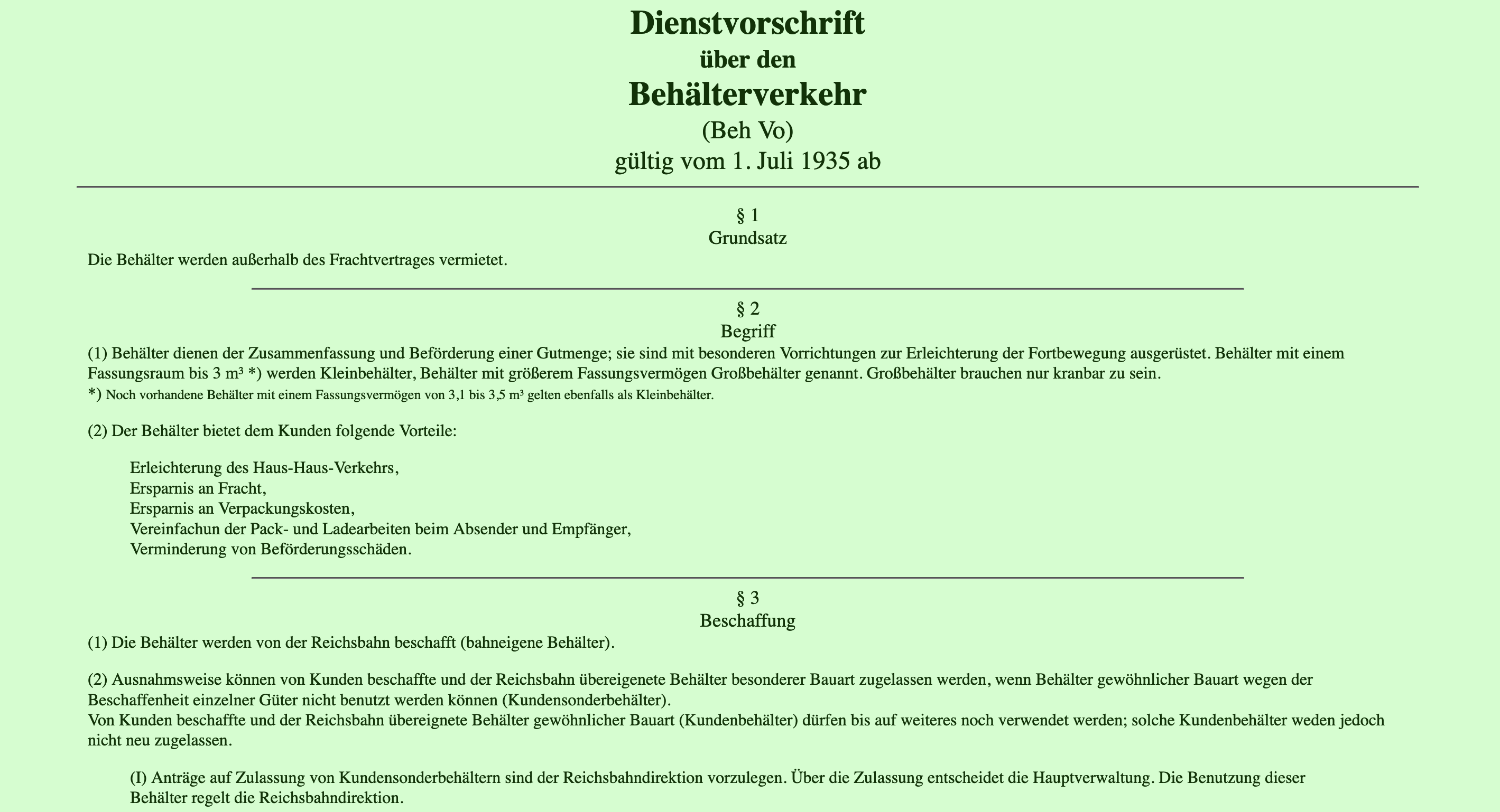DV 752 Dienstvorschrift über den Behälterverkehr (Beh Vo) vom 1. Juli 1935
