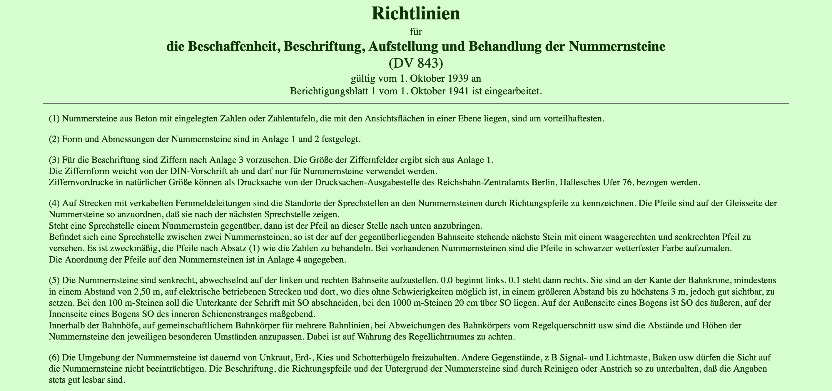 DV 843 Richtlinien für Nummernsteine vom 1. Oktober 1939