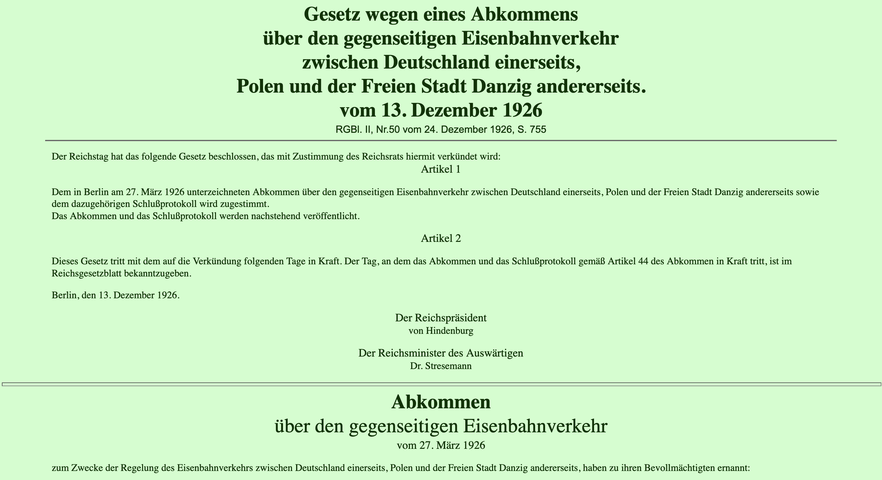 Eisenbahnabkommen zwischen Deutschland und Polen/Danzig vom 27. März 1926