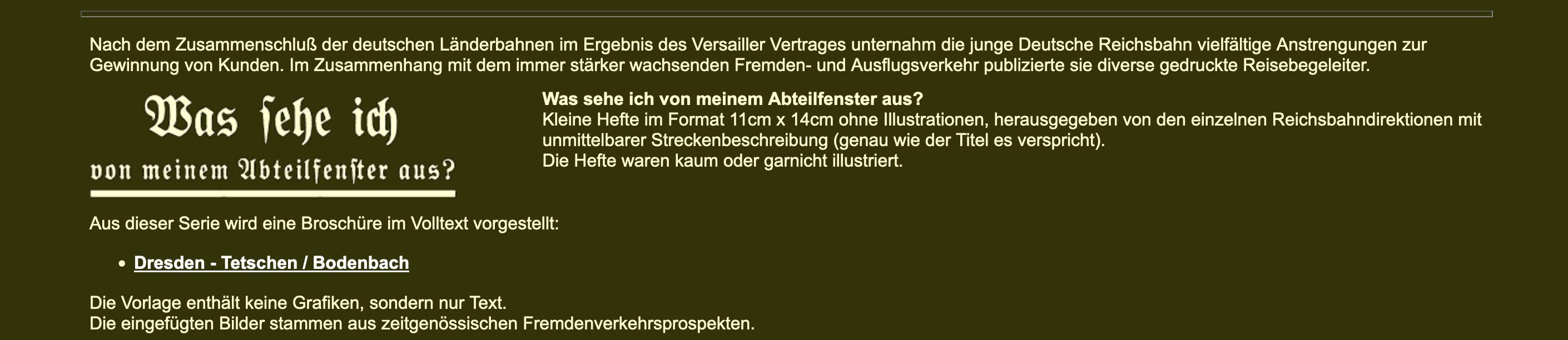 Gedruckte Reisebegleiter für Eisenbahnfahrten