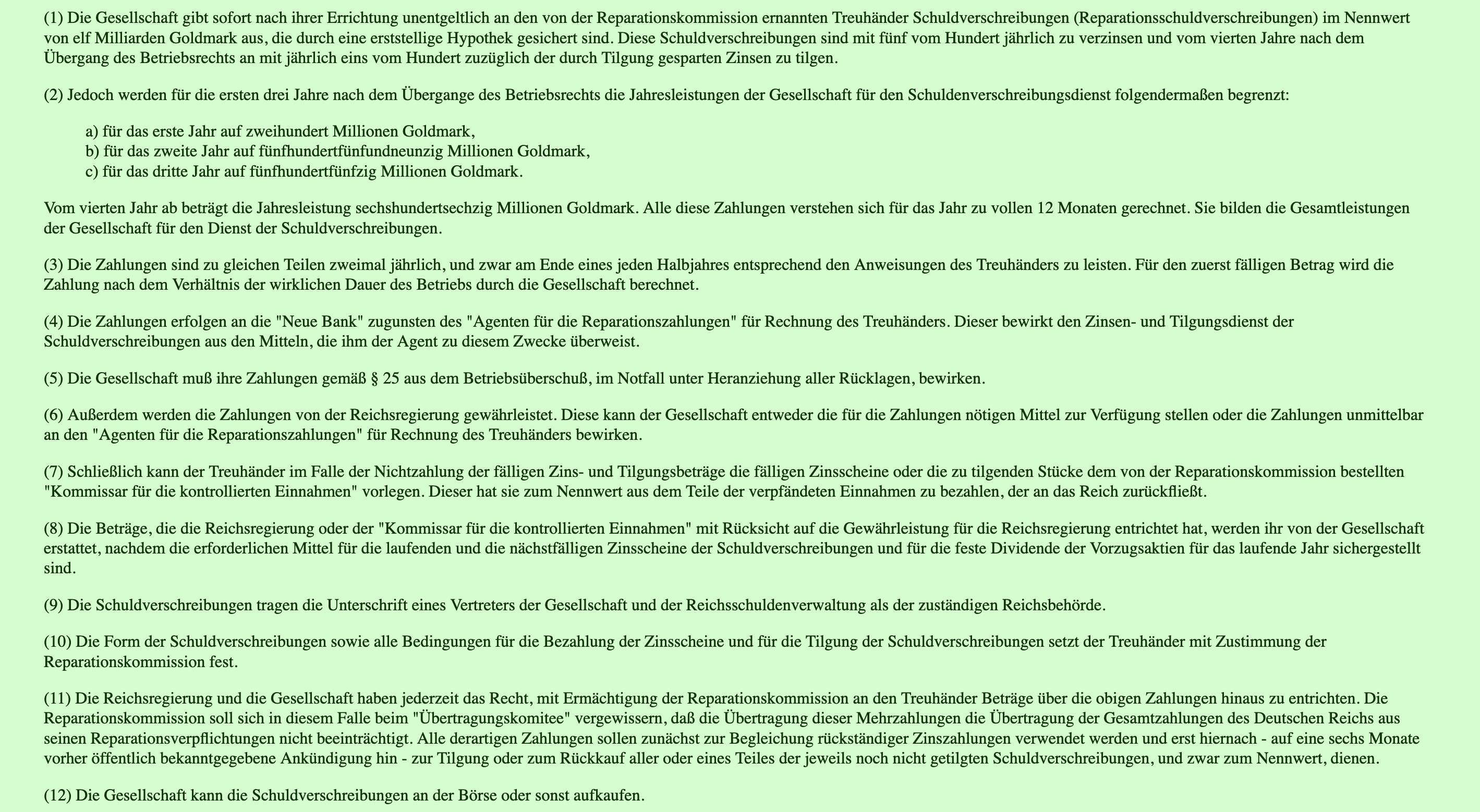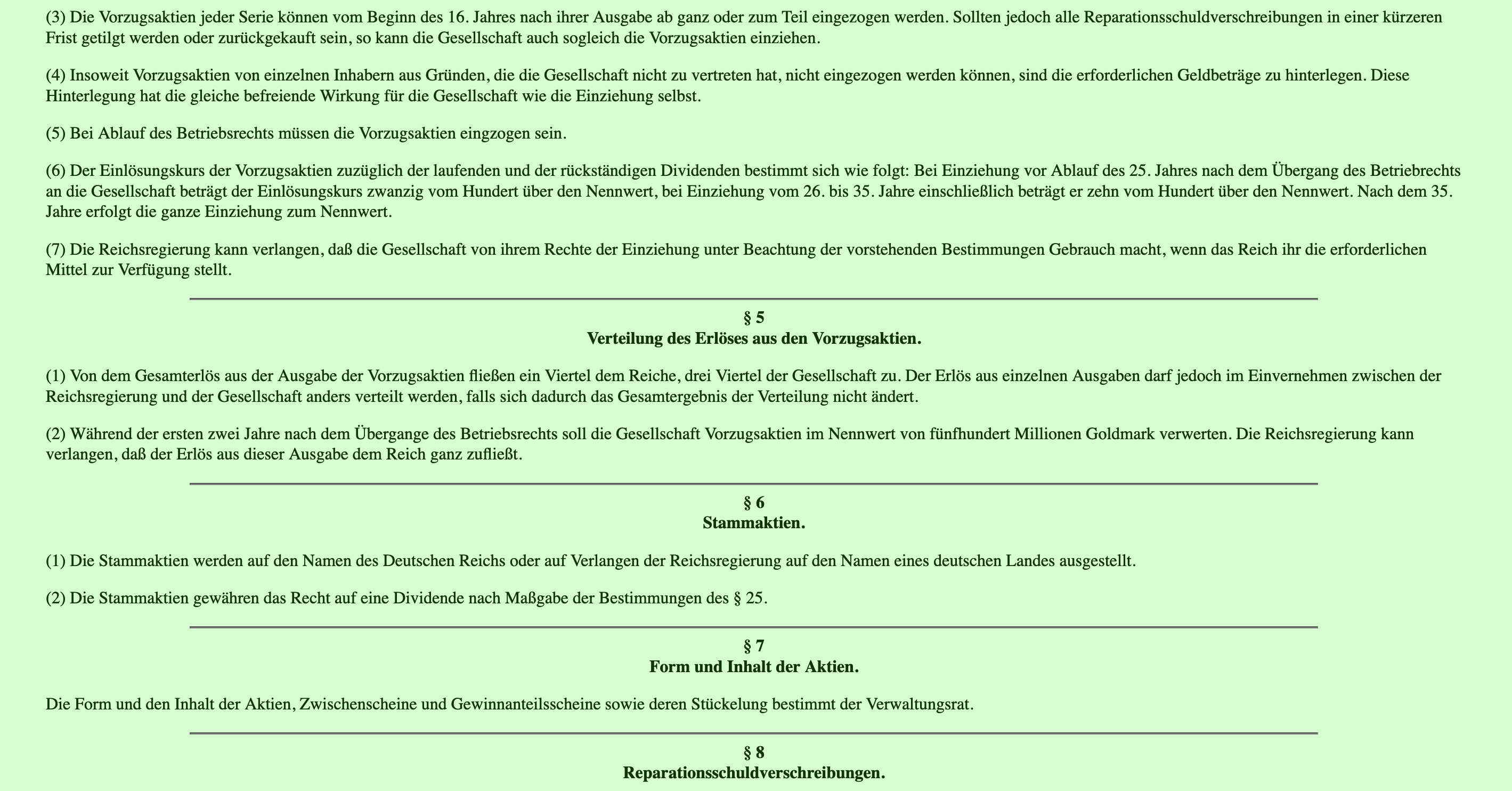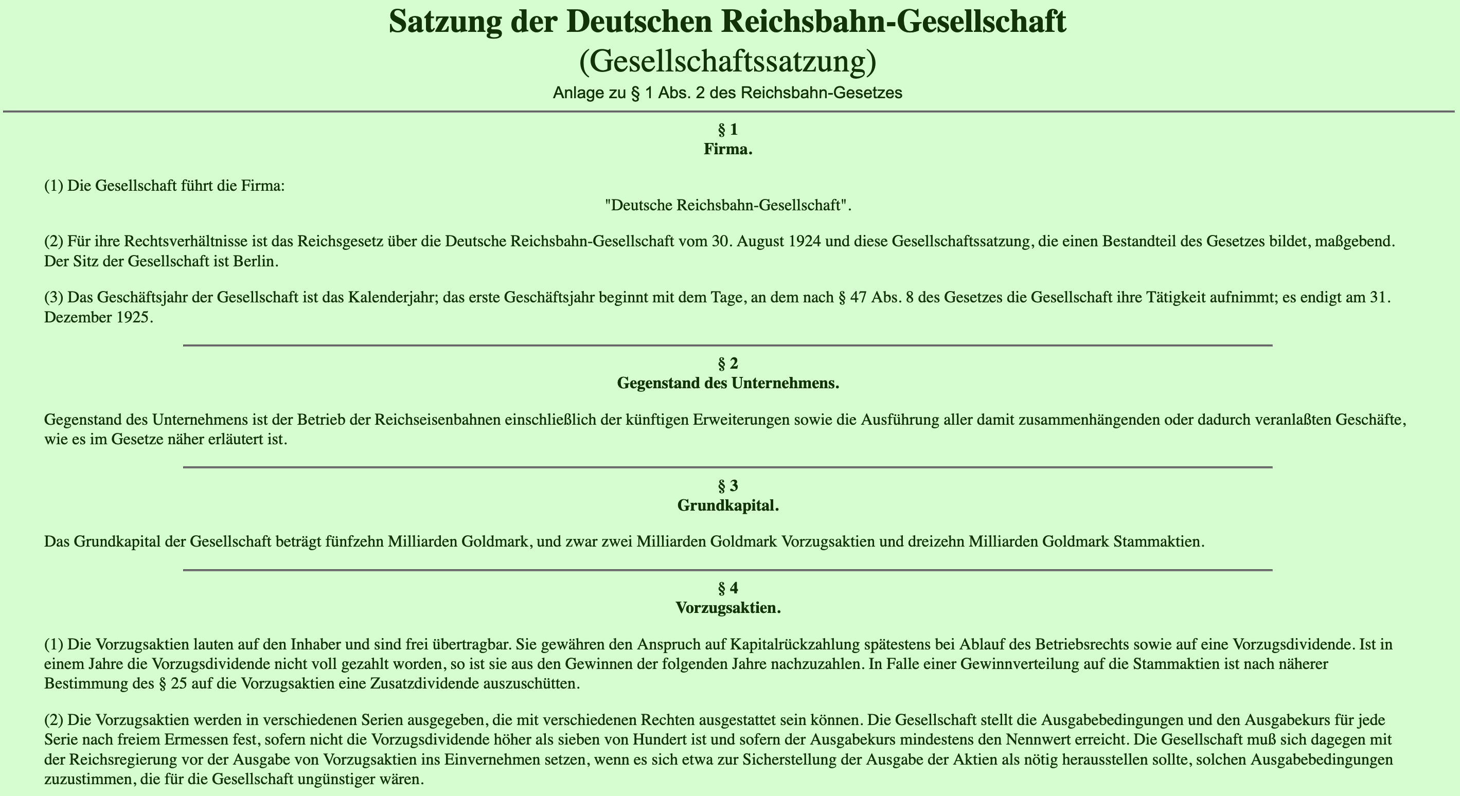 Die Gesellschaftssatzung als Anlage zum Reichsbahngesetz