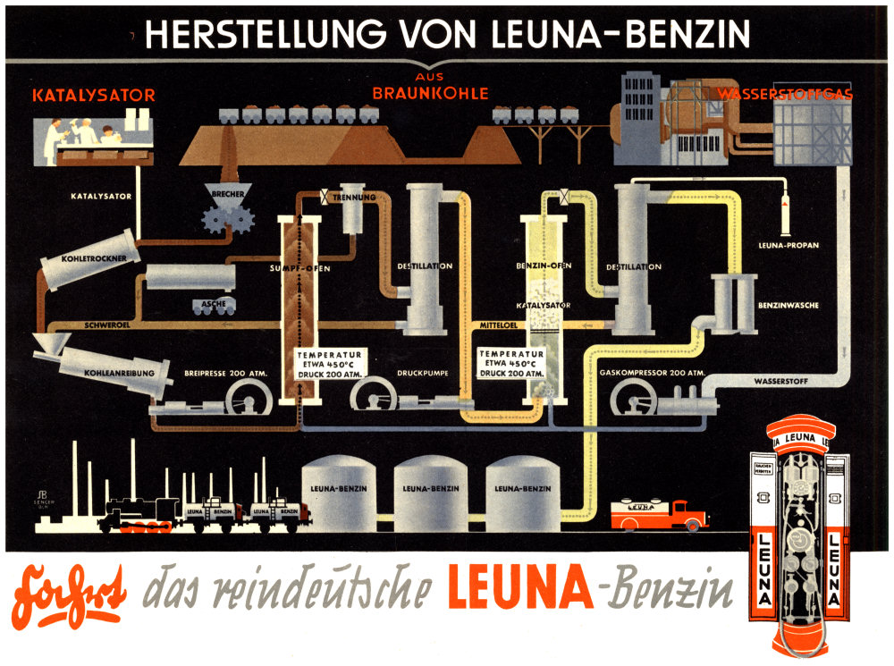 Benzin aus Kohle, erste großtechnische Kohlehydrierung - Leuna 1927