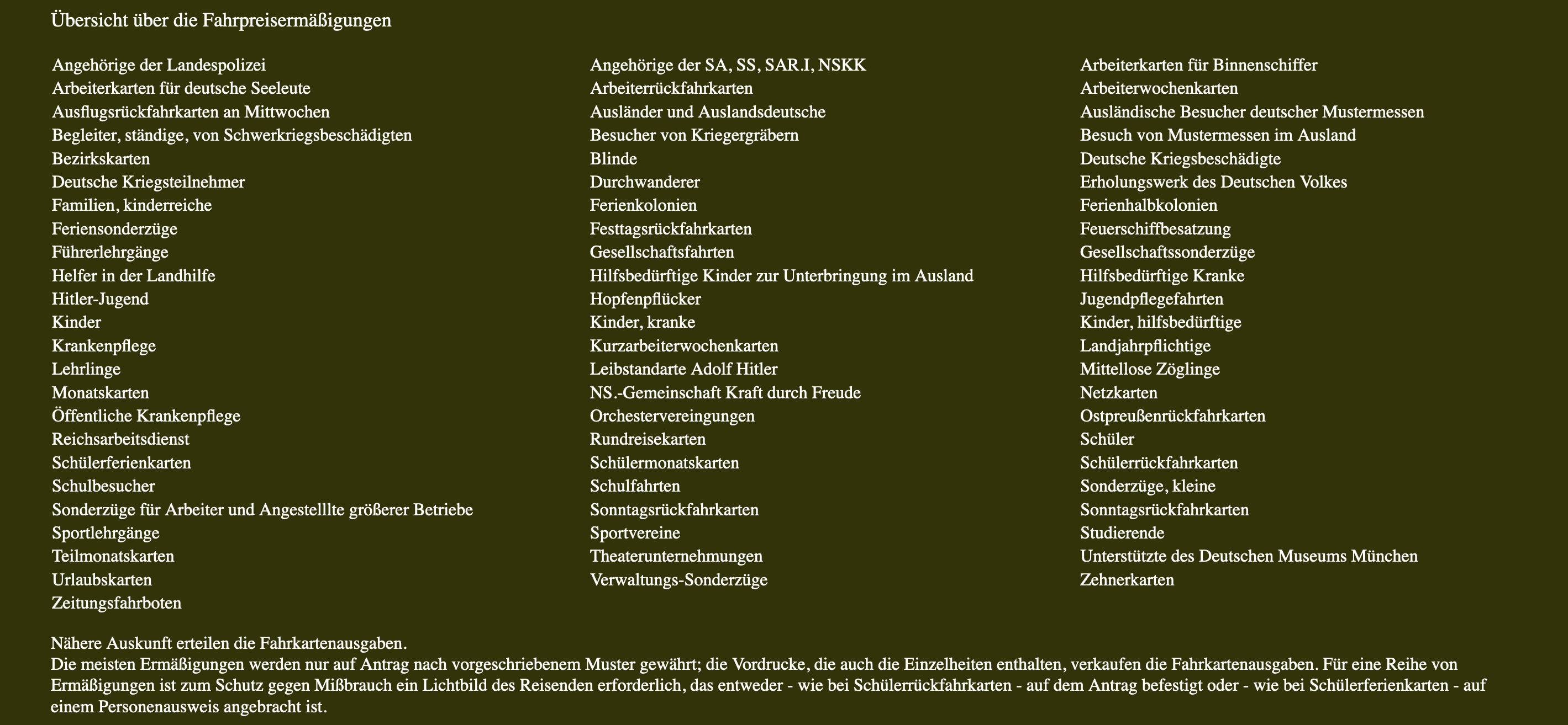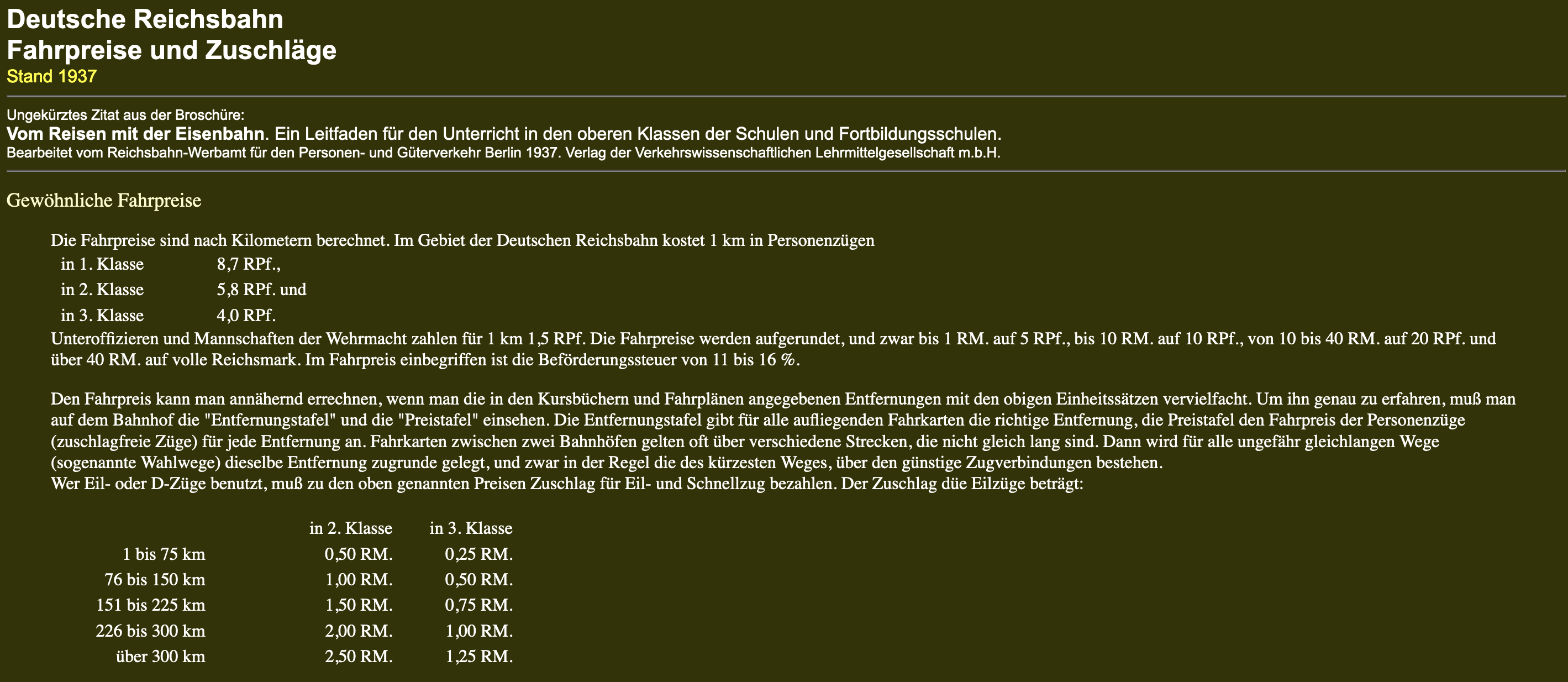 Personentarife mit Erläuterungen 1937
