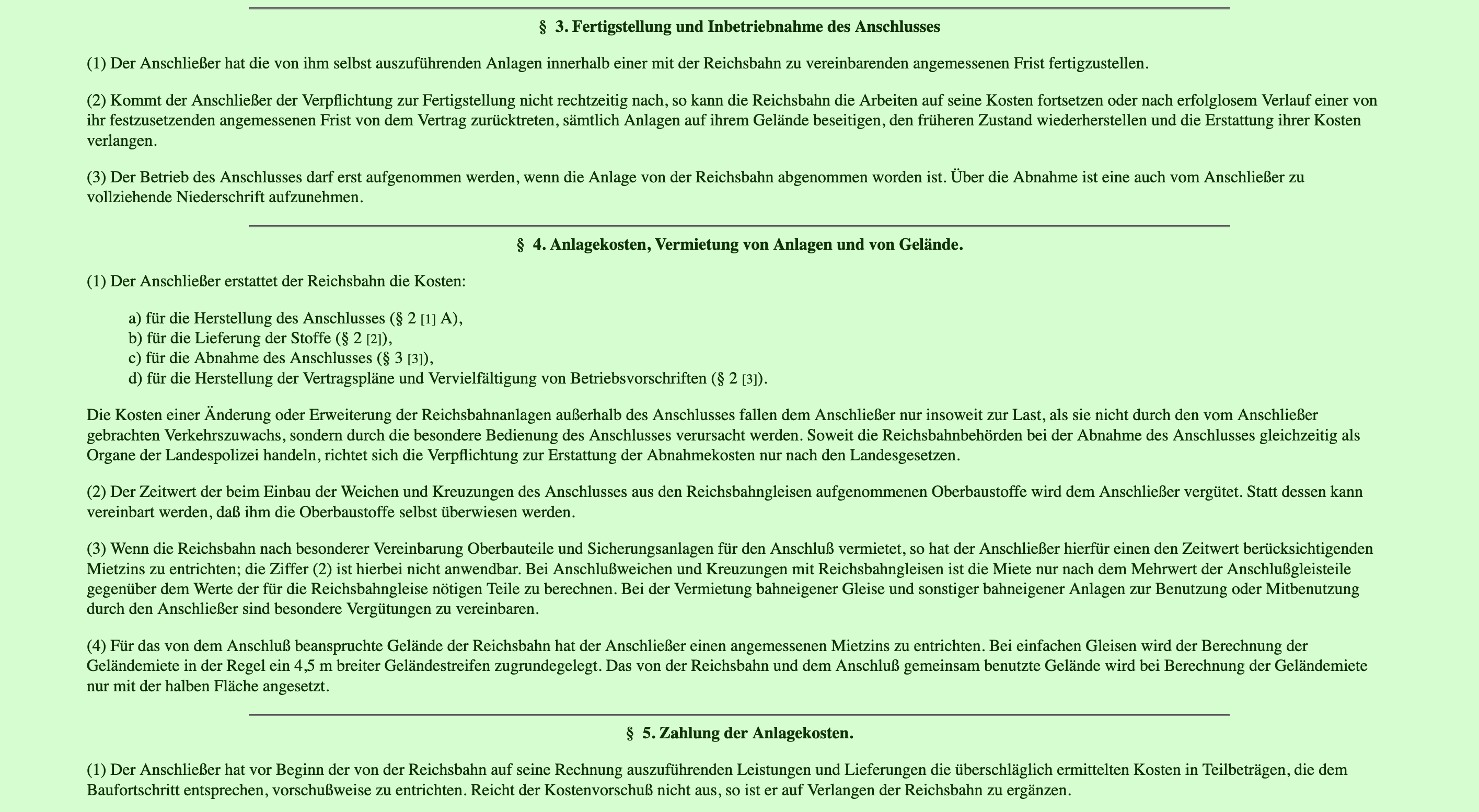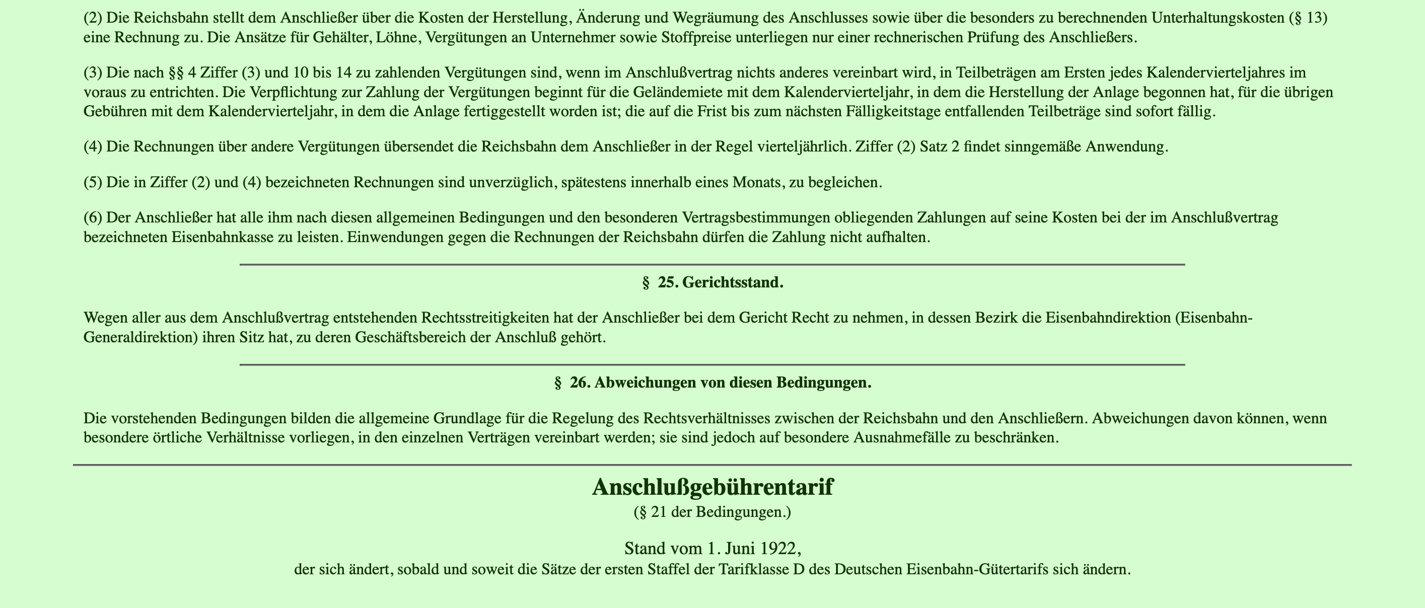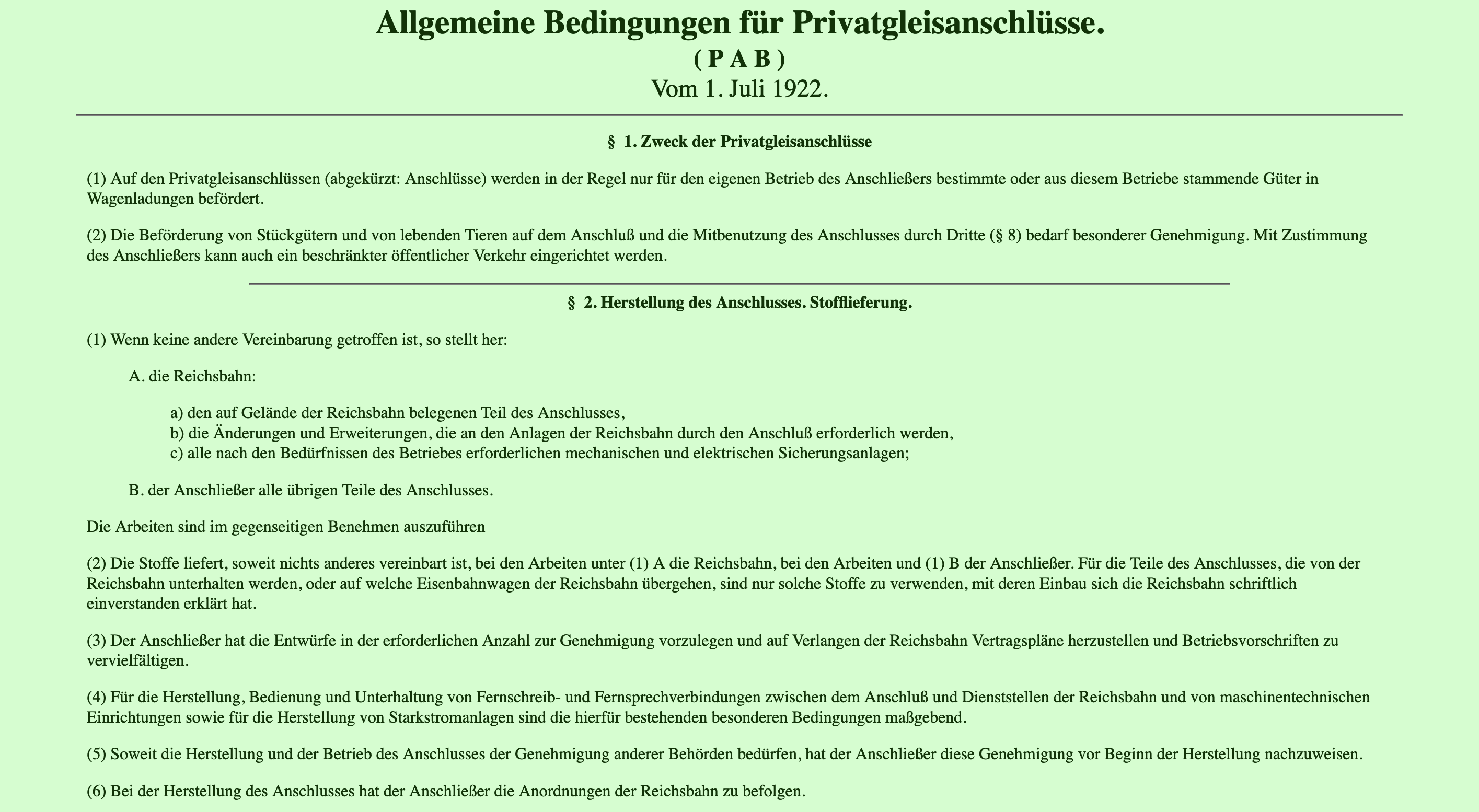 Allgemeine Bedingungen für Privatgleisanschlüsse (P A B) vom 1. Juli 1922