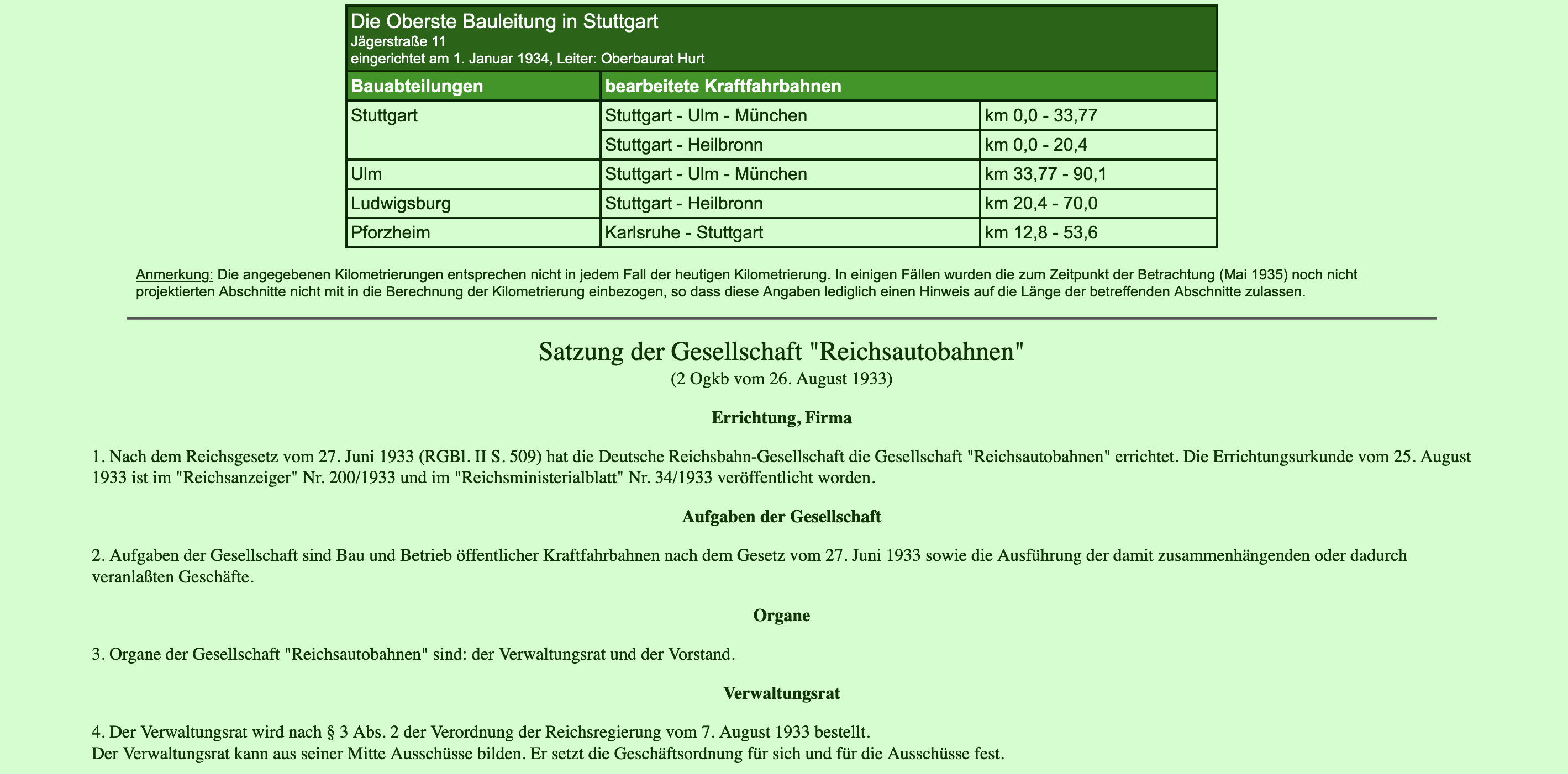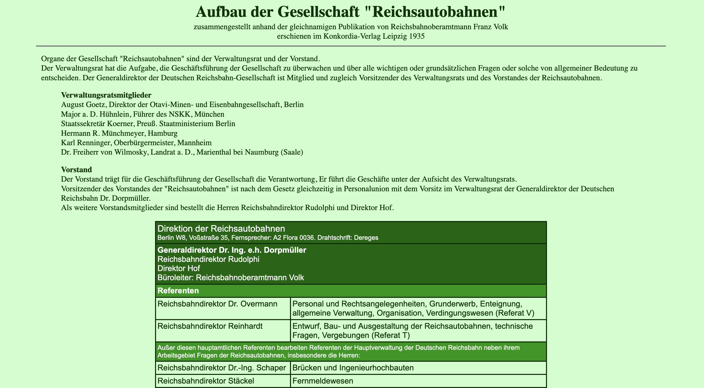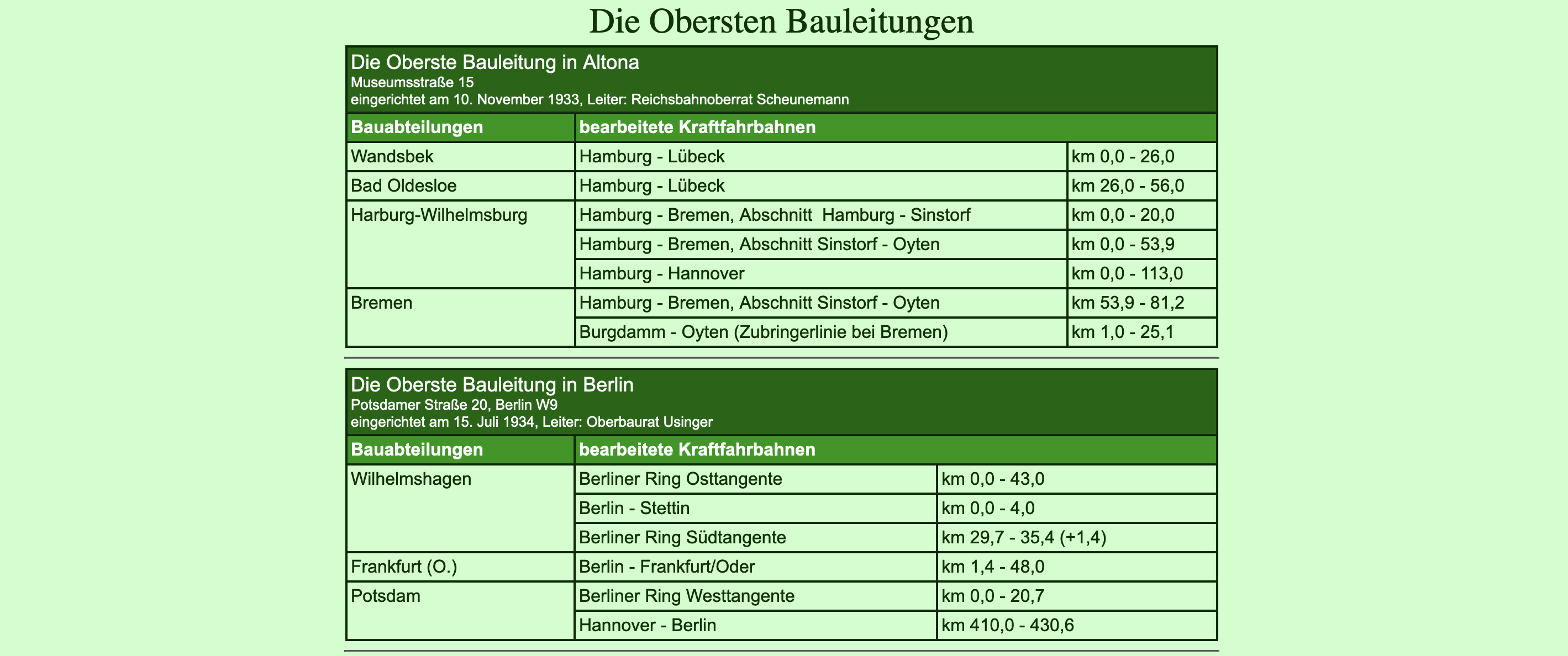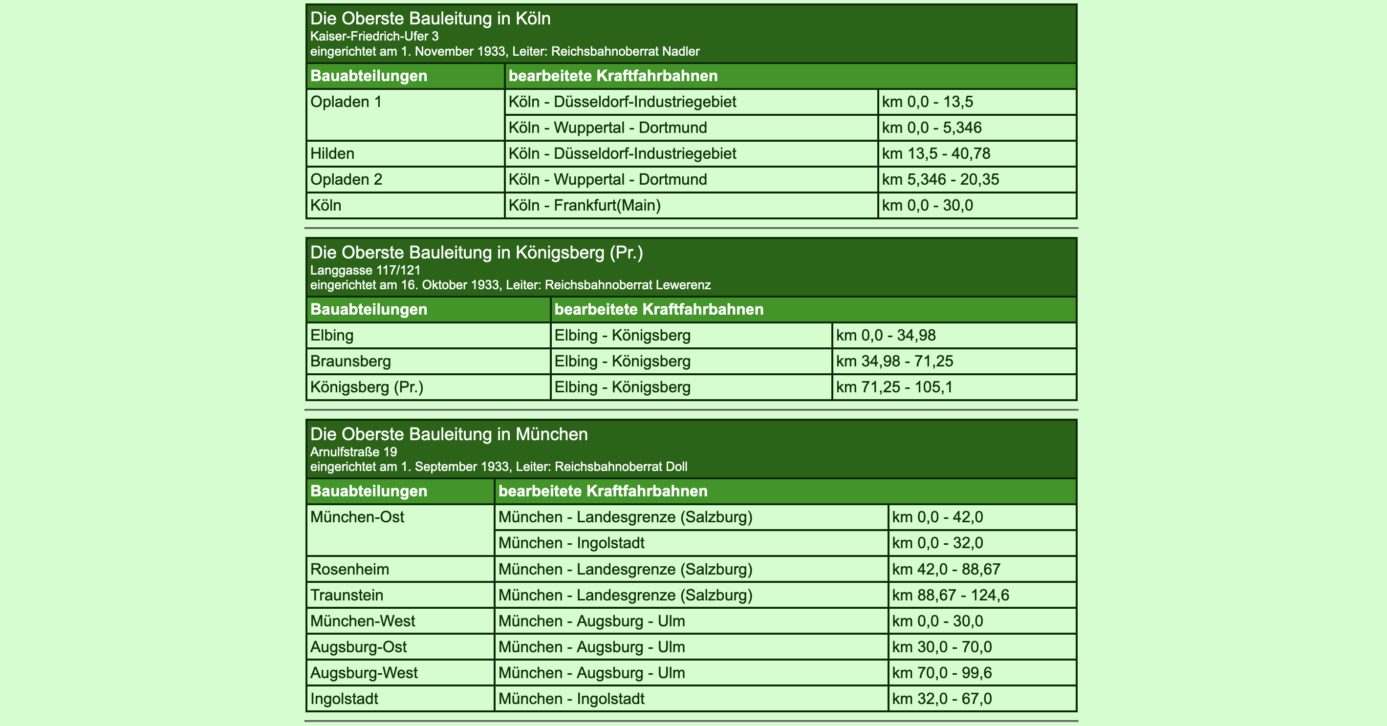 Die Gesellschaft "Reichsautobahnen" und ihre Obersten Bauleitungen, Stand Mai 1935