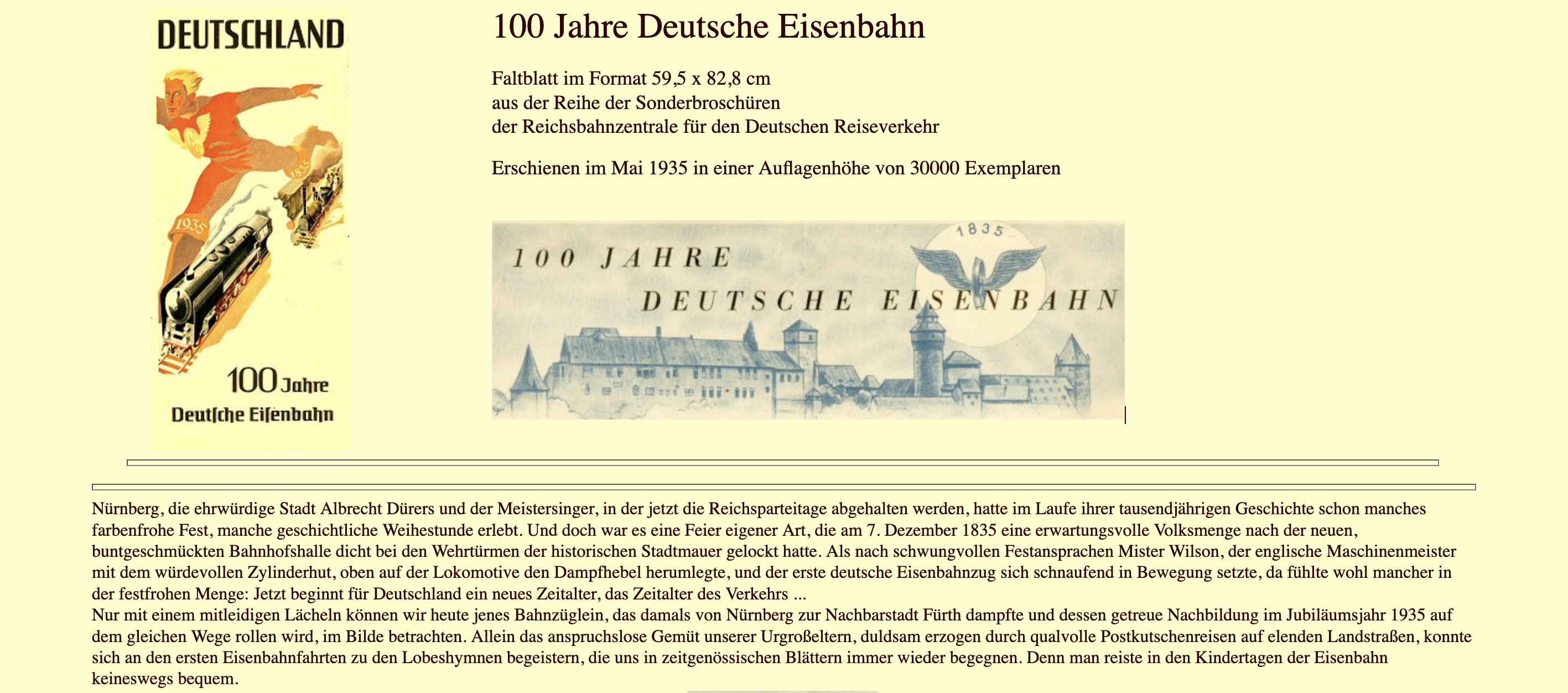 Die Sonderbroschüre "100 Jahre Deutsche Eisenbahn" 1935