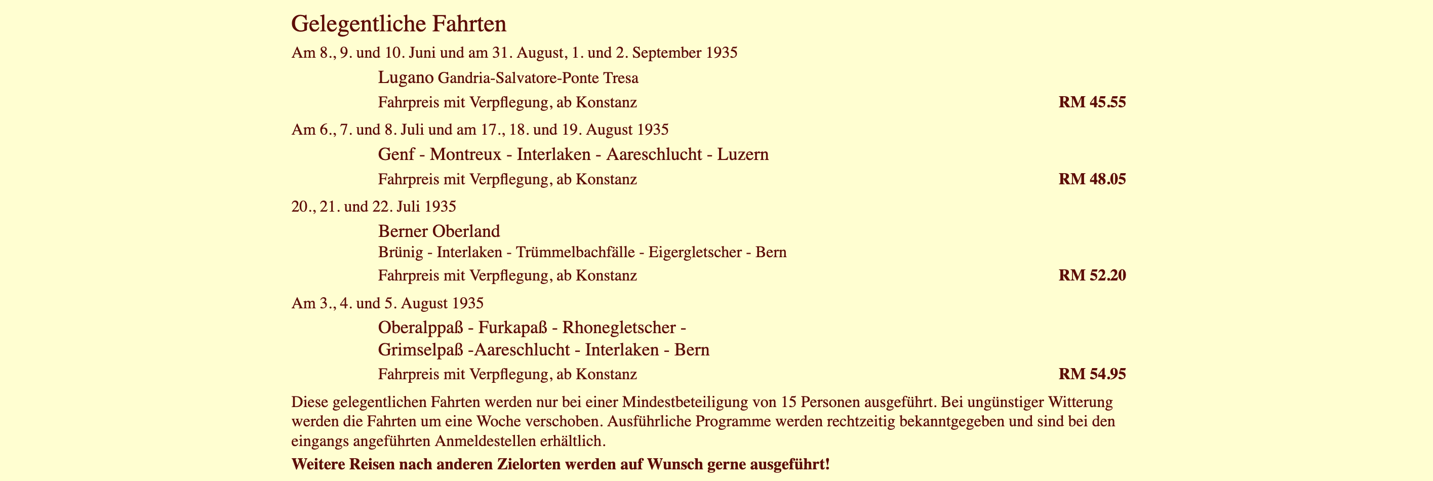 Sonderfahrten in die Schweiz (Sommer 1935)