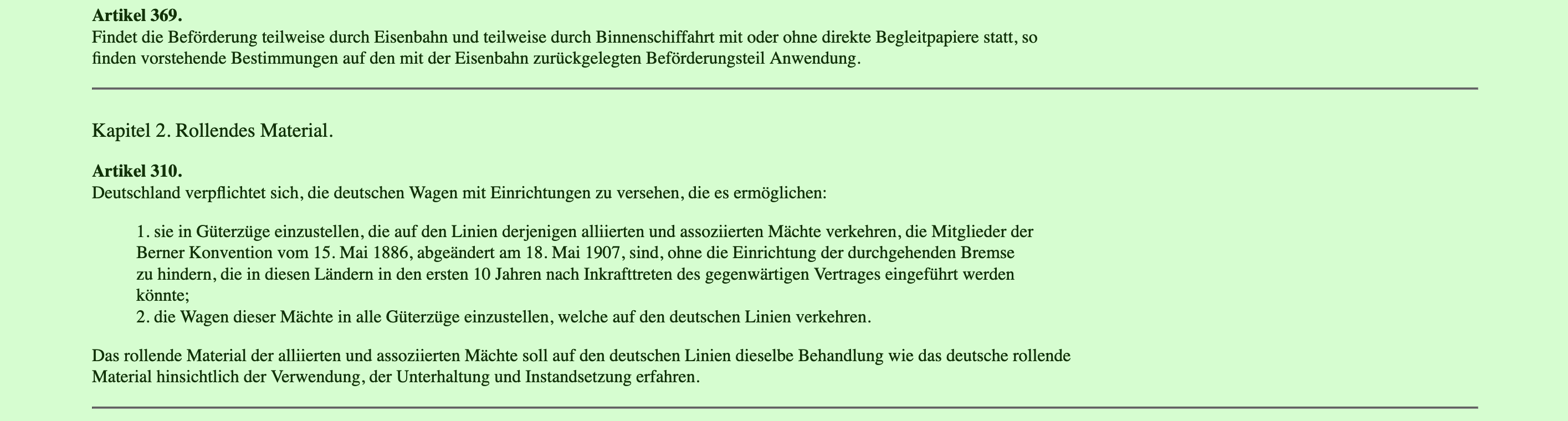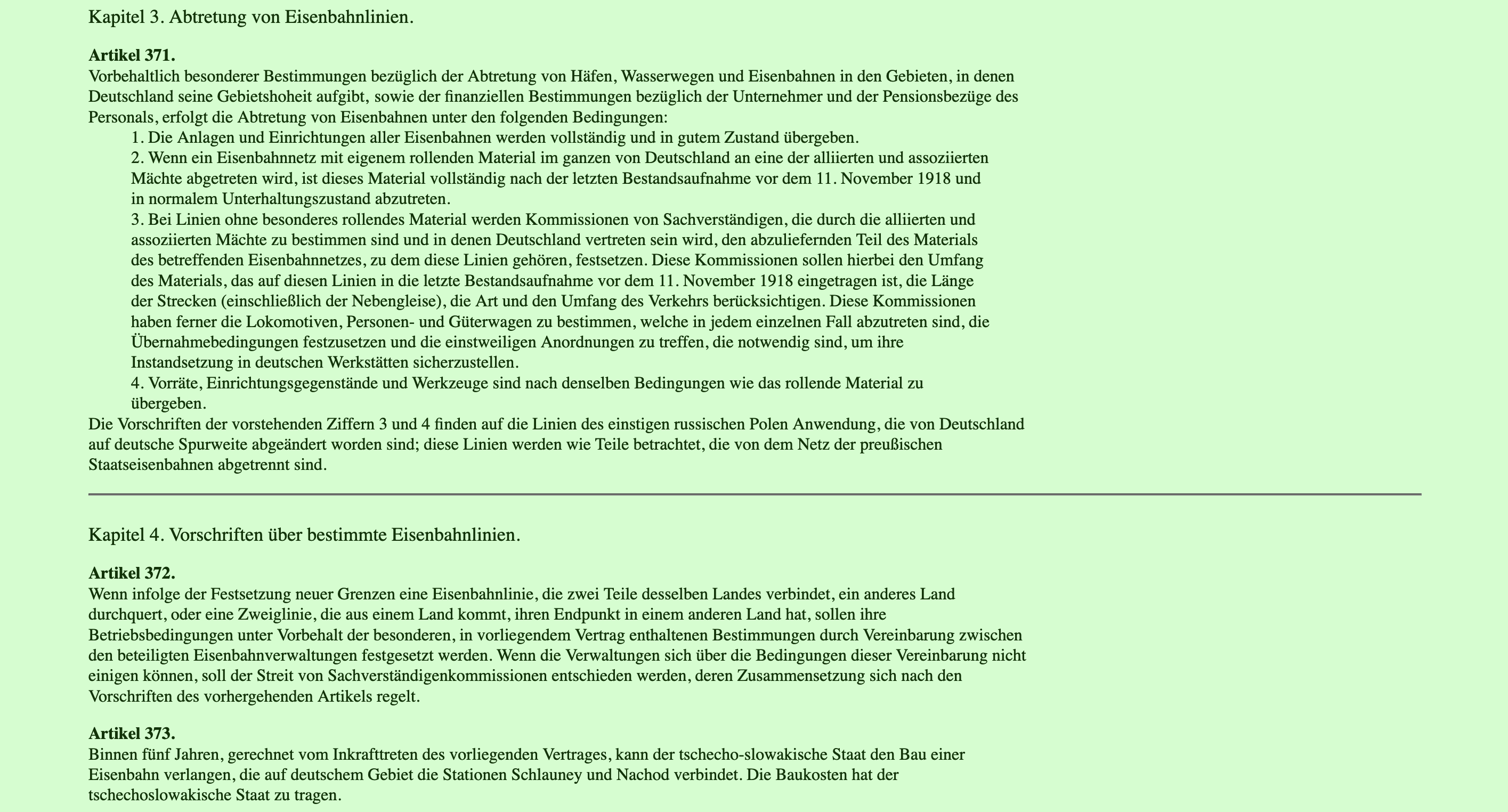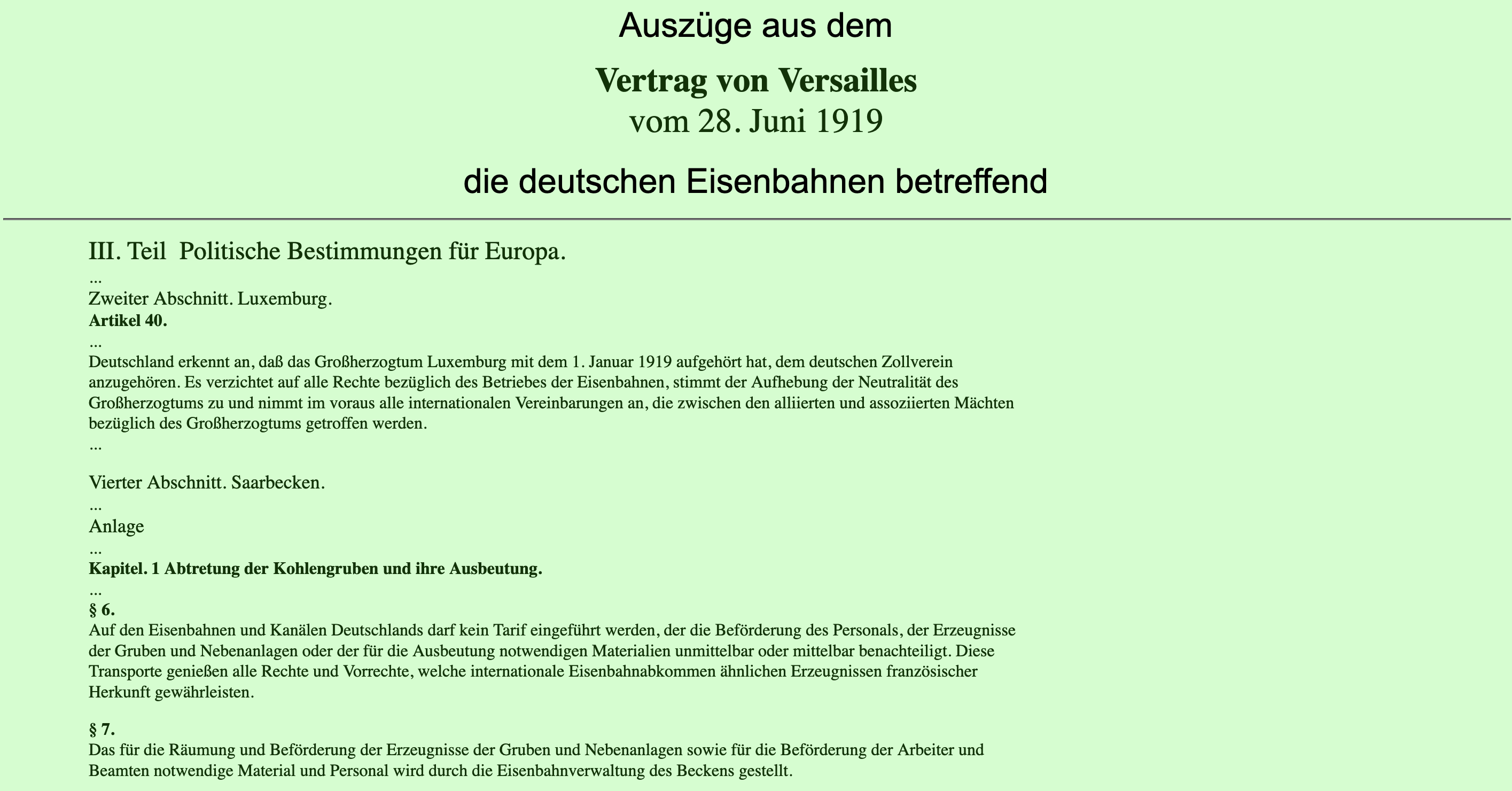 Auszüge aus dem Vertrag von Versailles vom 28. Juni 1919, die Eisenbahnen betreffend