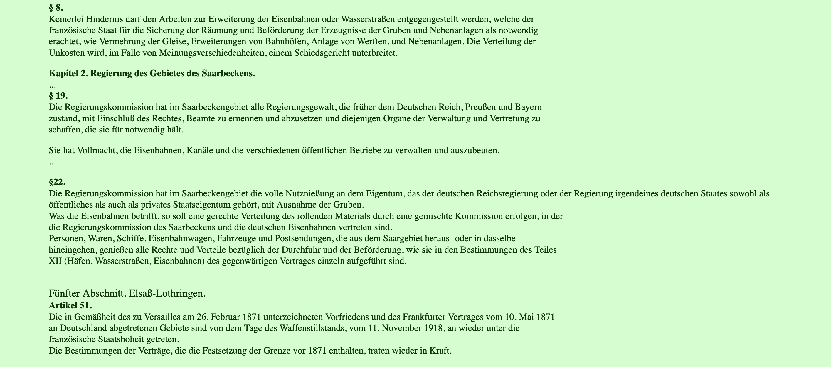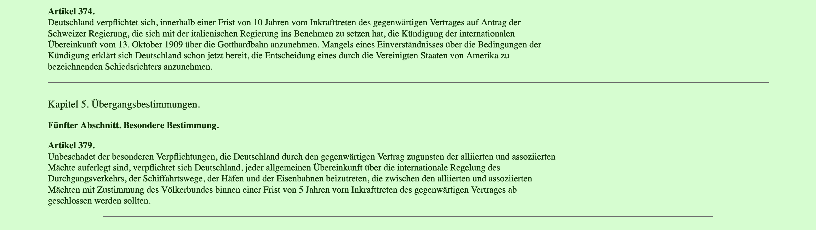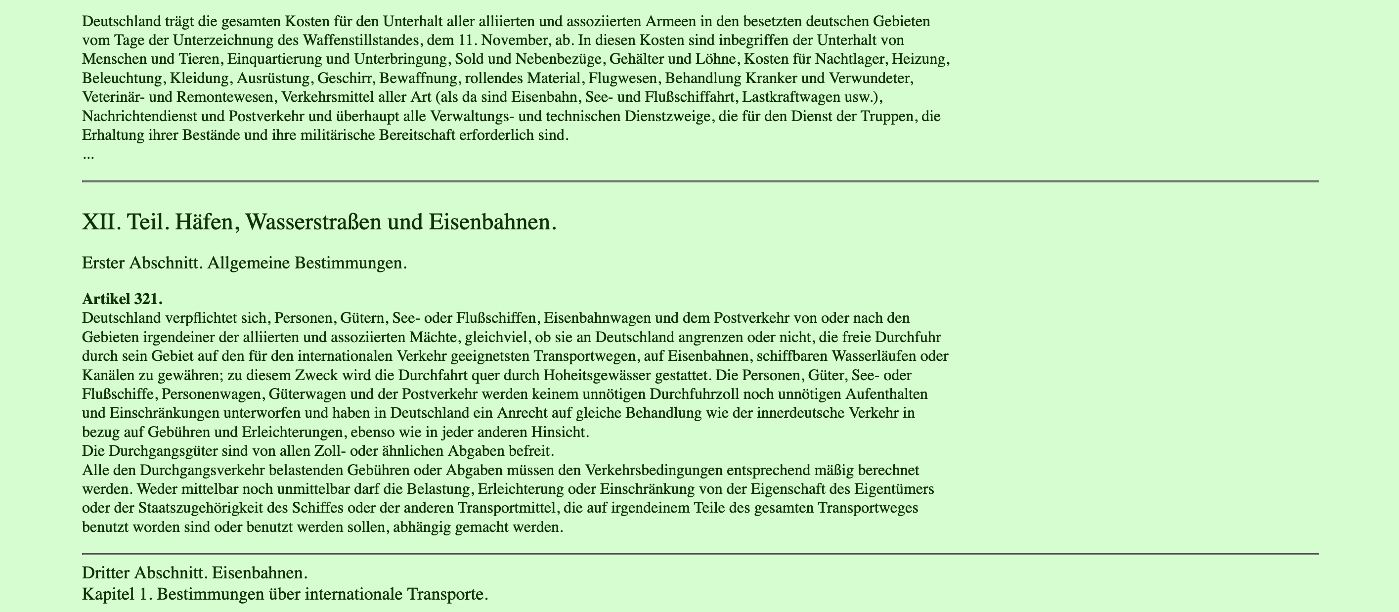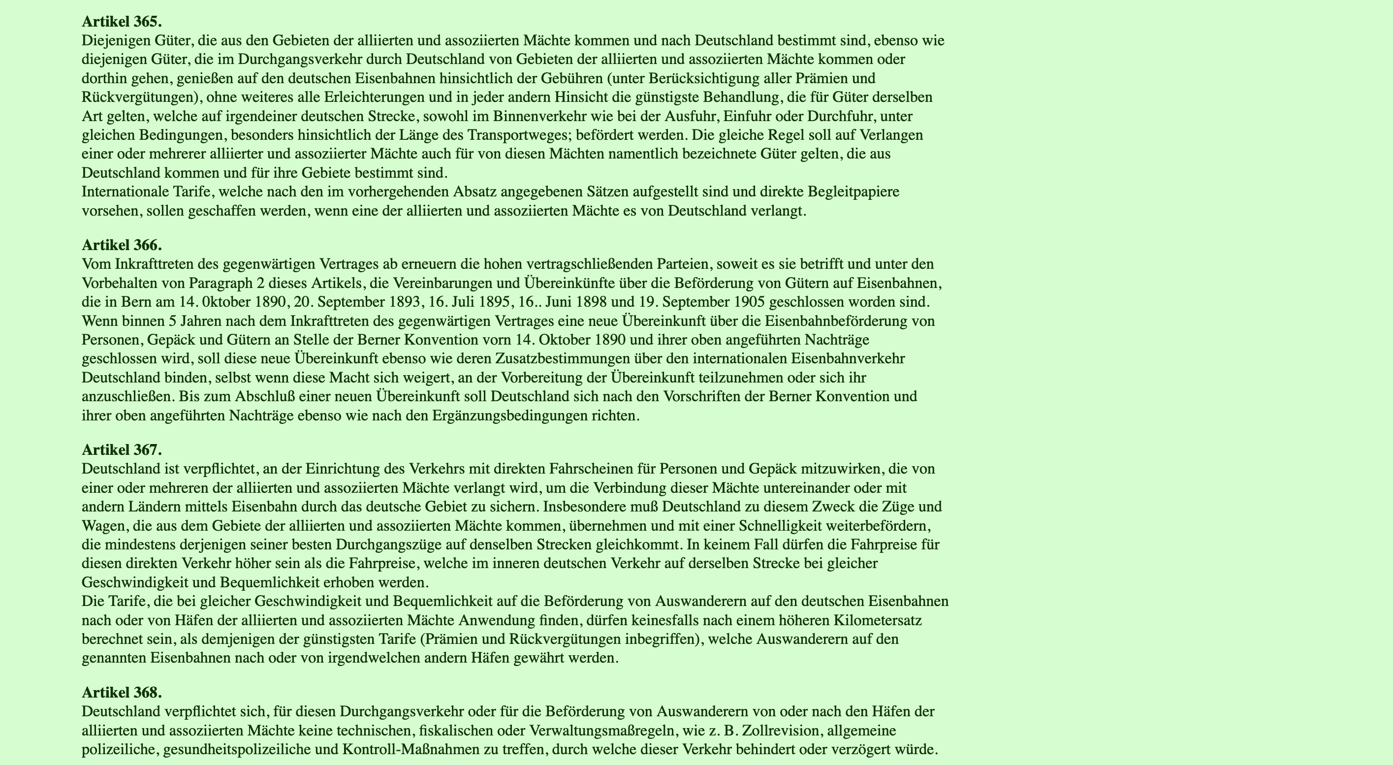 Auszüge aus dem Vertrag von Versailles vom 28. Juni 1919, die Eisenbahnen betreffend