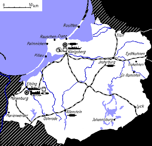 Am meisten wird Ostpreußens Wirtschaft durch die Verkehrsverhältnisse eingeengt. Seine Flüsse sind fast vier Monate vereist und tragen nur Kähne unter 400 t, der Oberländische Kanal nur unter 100 t. Die Dünenbildung an der Küste erschwert den Zugang zum Meer. Außerdem ist Ostpreußen durch das Friedensdiktat von der Weichsel und vom Memeler Tief abgeschnürt worden und hat die Landverbindung zum Reich verloren. Königsberg wird seine Aufgabe, die jahrhundertealten Handelsbeziehungen zu den osteuropäischen Staaten zu pflegen, nur dann erfüllen können, wenn die Verbindungen zum Reich noch erheblich verbessert werden. In steigendem Maße ist die Reichsinsel Ostpreußen in den letzten Jahren Reiseziel vieler Deutscher geworden. Vor allem werden die Ostseebäder und die Wald- und Seengebiete Masurens aufgesucht.