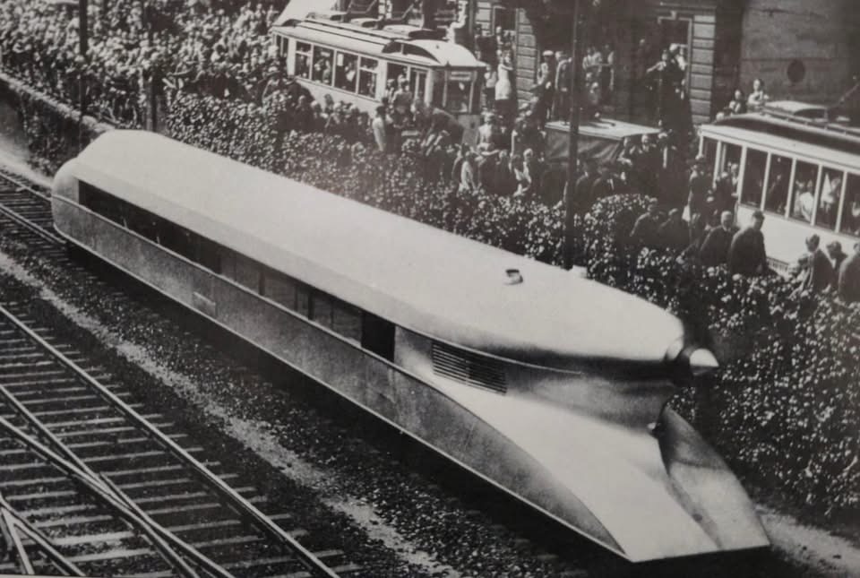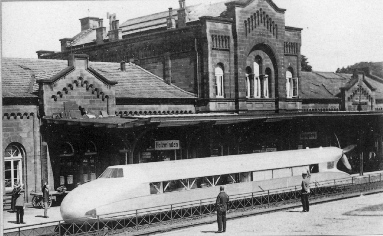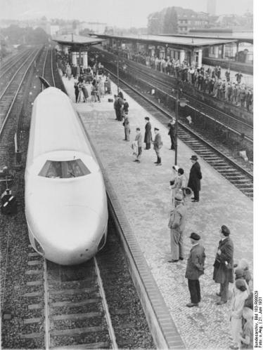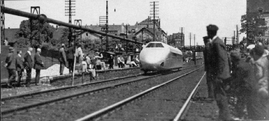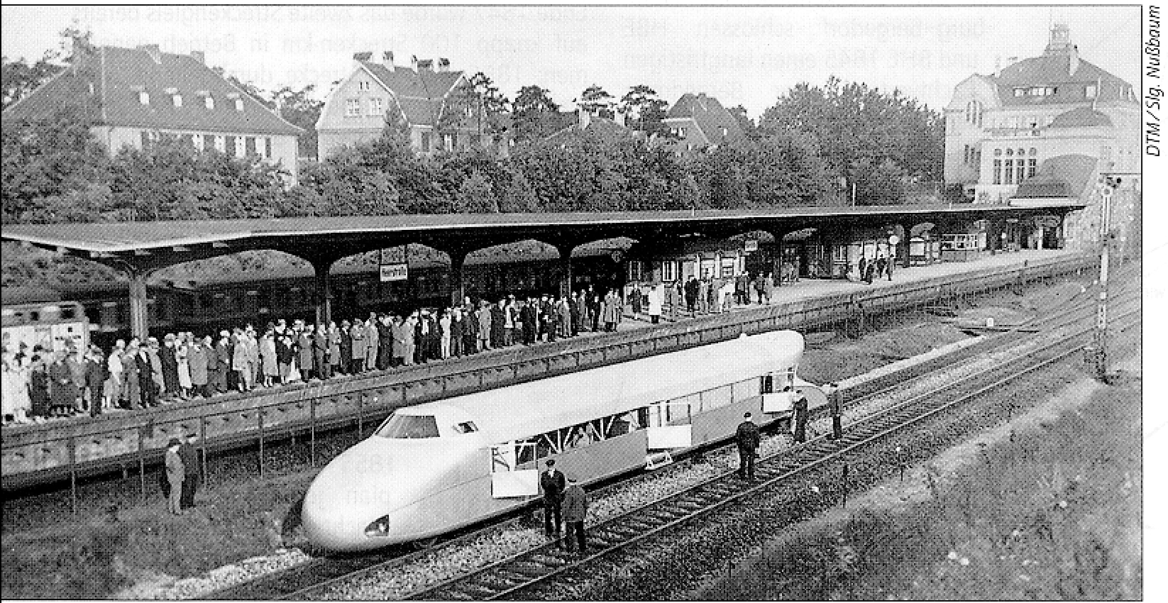 Menschentrauben am S-Bahnsteig Heerstraße in Berlin am 21.6.1931 nach der Recordfahrt des Schienenzeppelins
